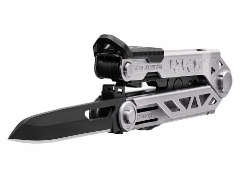 - функції кишенькового ножа: великий лезо, зубчасте лезо, відкривачка для пляшок, колесо, ножиці, вимірювальна стрічка, металевий напилок, плоскогубці, різак для дроту, зірчаста викрутка, плоска викрутка