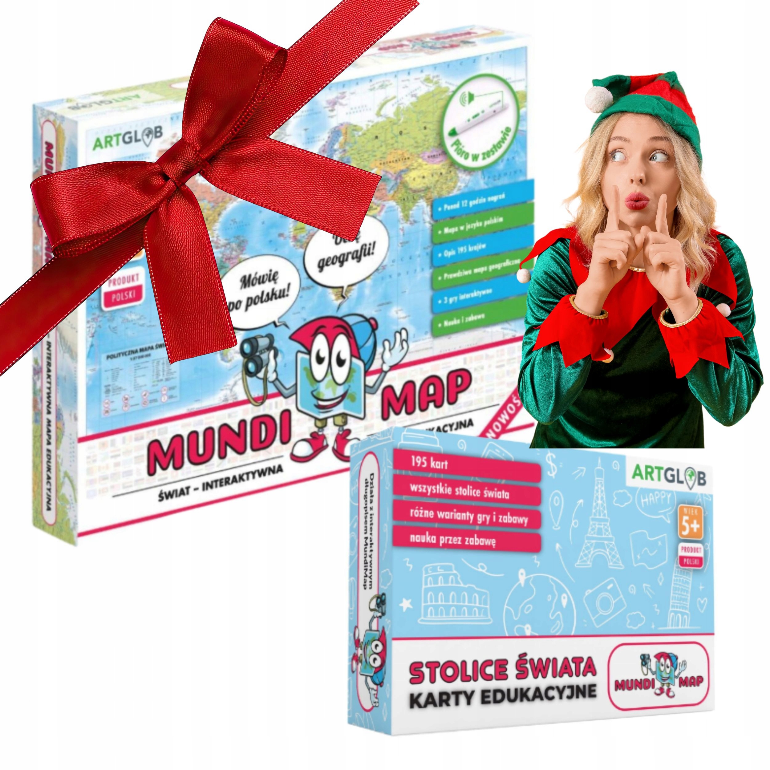 MundiMap INTERAKTYWNA MAPA z długopisem + Karty STOLICE ŚWIATA dla Dzieci