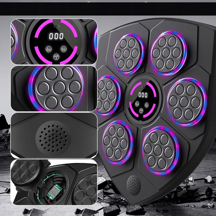 🥊🥊 Унікальний дизайн: Ця музична бокс-машина має унікальну форму диска, займає менше місця. Він оснащений функцією відтворення через Bluetooth, тож ви можете підключити свій телефон і слухати улюблені пісні, що зробить ваші боксерські тренування менш нудними. Крім того, він має вражаючі світлові ефекти та ефекти боксу. Кожен ефект, який ви одягаєте, дає вам зворотний зв’язок, додаючи трохи додаткового задоволення вашим боксерським тренуванням.