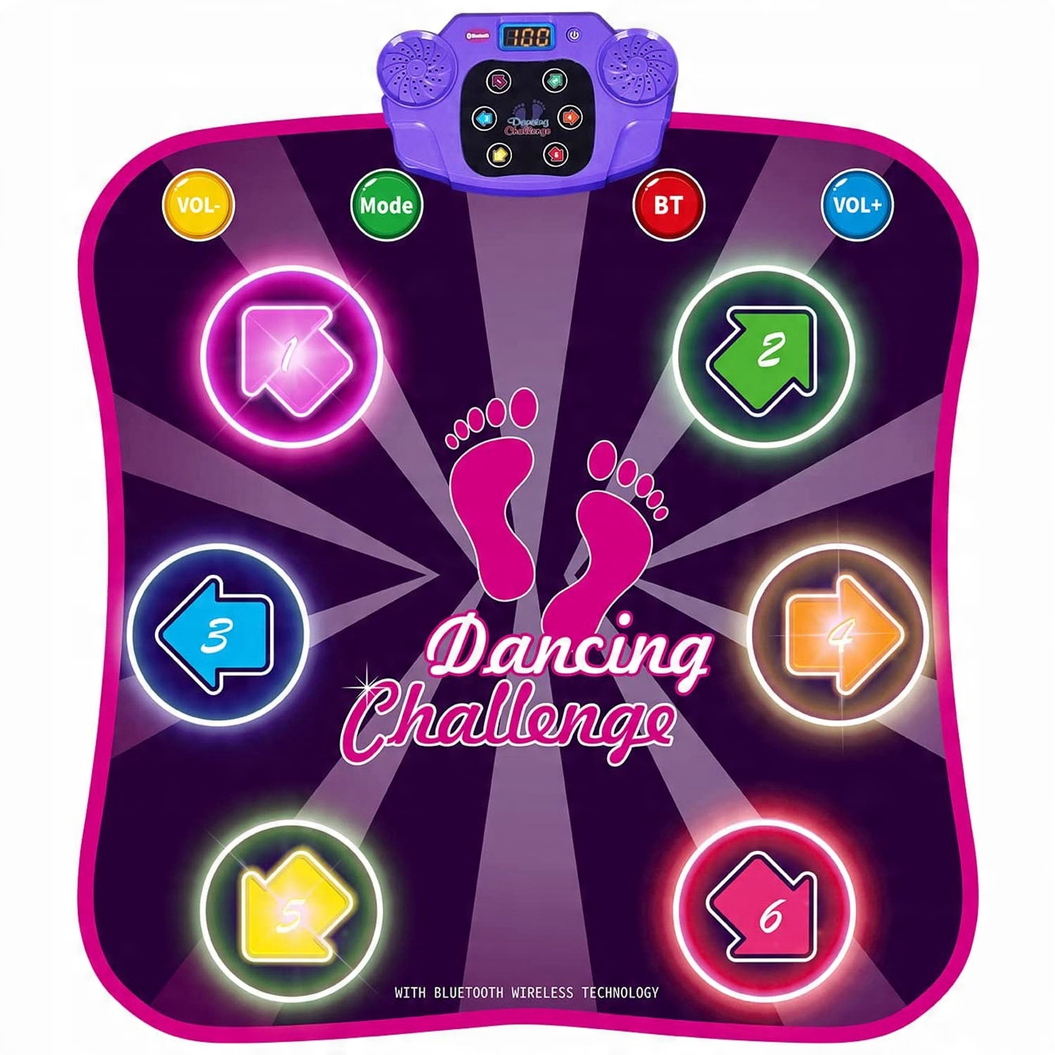🌈【6 стрілок і підсвічування】:Наш танцювальний килимок оновлено порівняно з танцювальним килимком із 4 стрілками. з 6 стрілками, що дозволяє дітям вивчати складніші танцювальні рухи та робити танець цікавішим. І ці 6 дротиків можна зробити яскравішими, щоб вони виглядали більш крутими та смішними. Нехай ваша дитина закохається в танці.