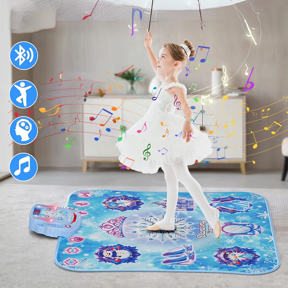 Ця інтерактивна іграшка принесе радість танцю прямо у ваш дім. Наповнений фантастичними функціями та простим керуванням, він забезпечує нескінченні розваги для дітей віком від 3 років. Дозвольте музиці надихнути на рухи вашої дитини та зробити її світ яскравішим за допомогою цього чудового танцювального килимка. Це ідеальний подарунок на день народження, День захисту дітей, Хелловін, День подяки, Різдво та інші свята чи фестивалі. Примітка: потрібні 4 батарейки типу АА (не входять у комплект).