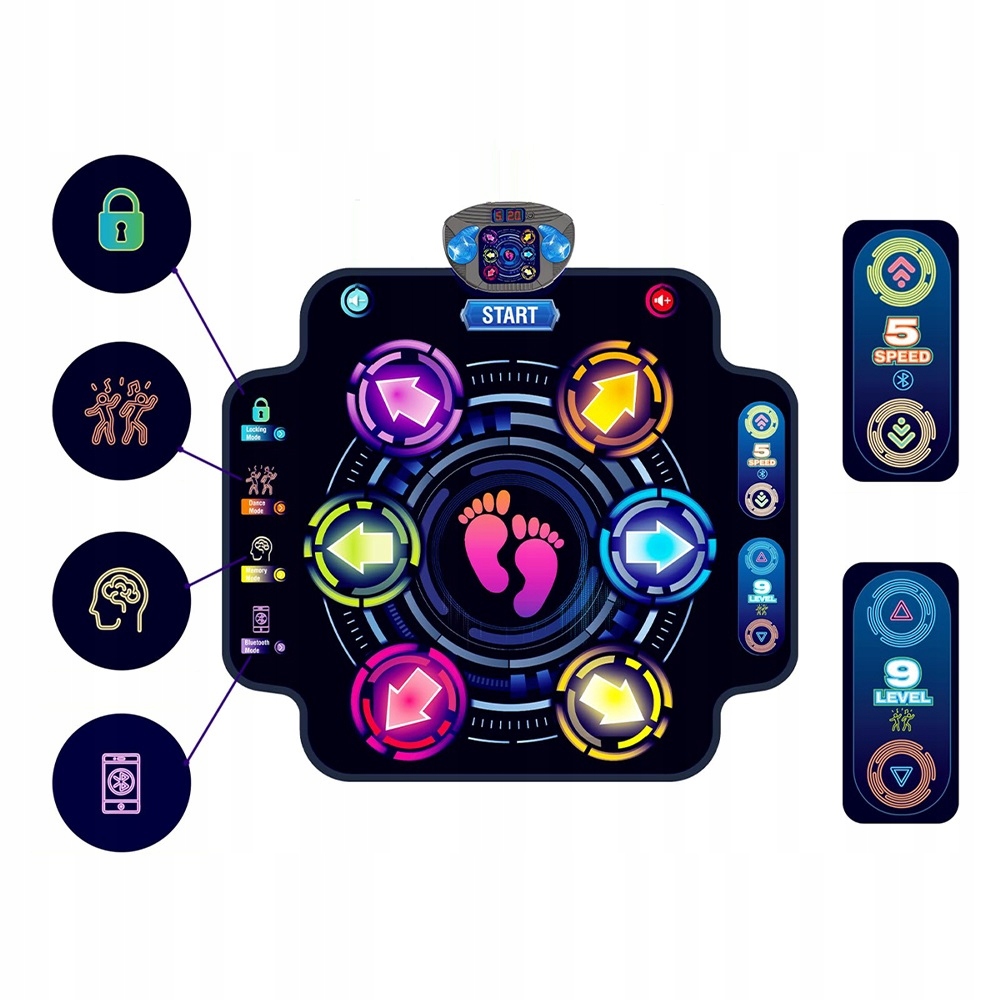 МУЗИЧНИЙ LED Килимок З BLUETOOTH ДЛЯ ТАНЦІВ З 9 РІВНЯМИ СКЛАДНОСТІ ДЛЯ ДІТЕЙ
