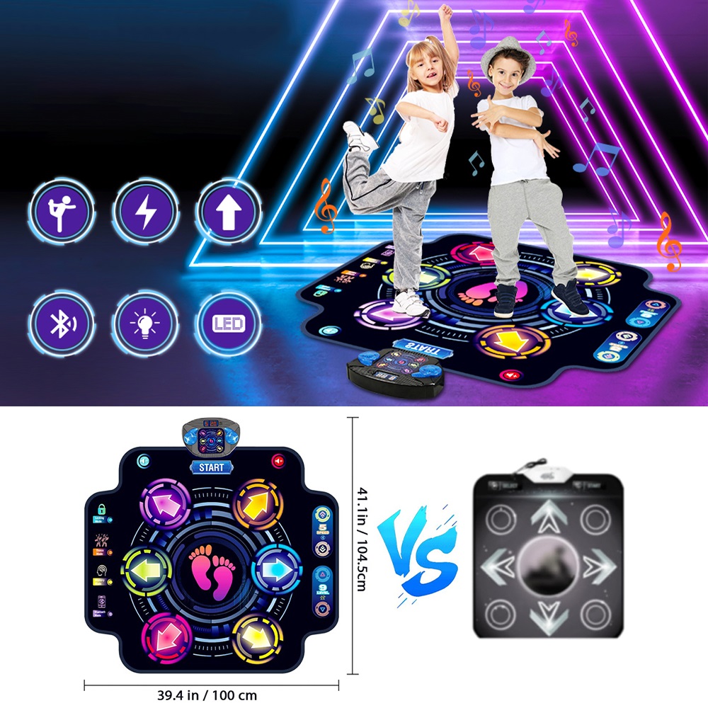 - 🎸Наш сяючий танцювальний килимок підтримує з’єднання Bluetooth. Просто об’єднайте його зі своїм смартфоном або іншим пристроєм із підтримкою Bluetooth.