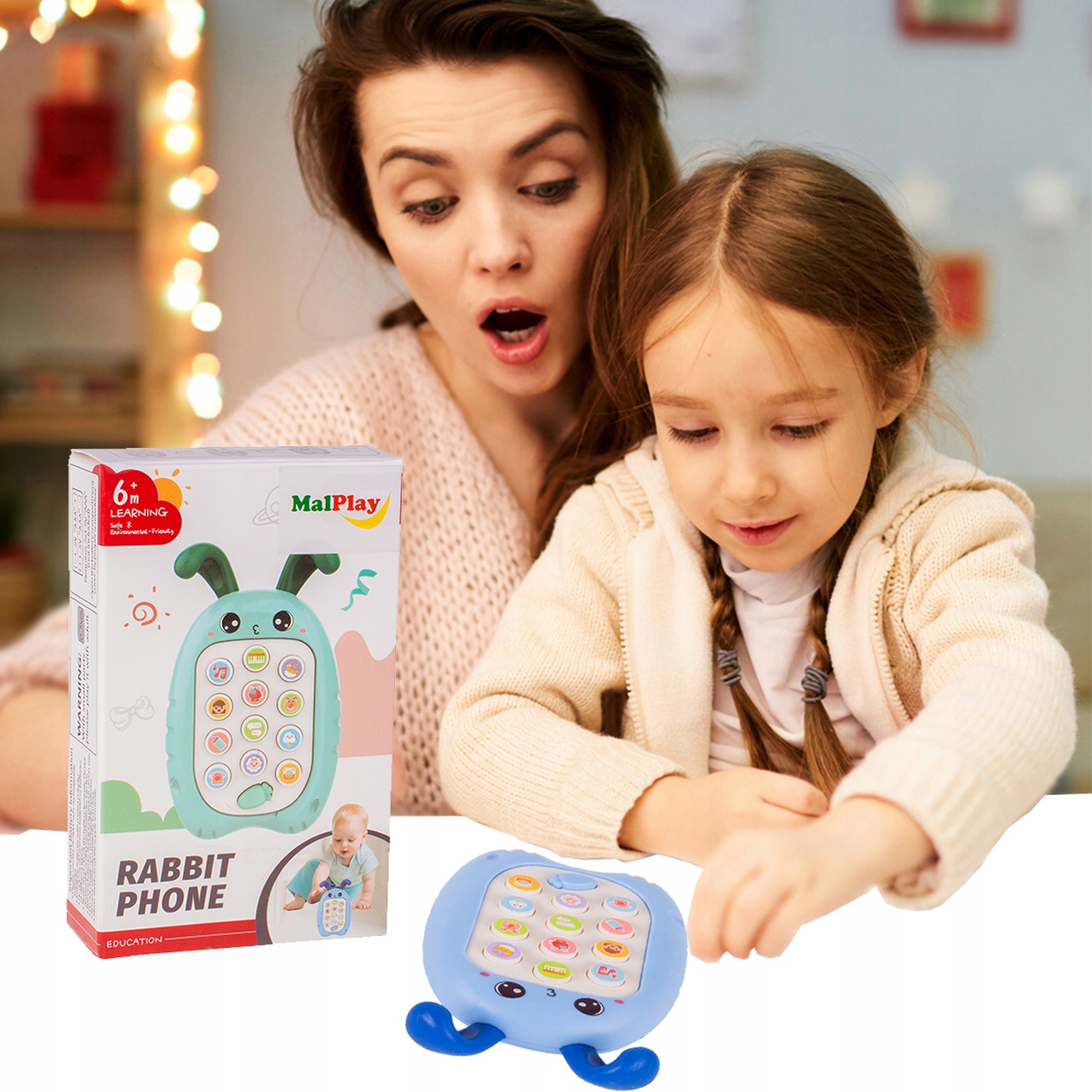 Це барвиста іграшка, схожа на справжній мобільний телефон! Дуже реалістичний вигляд і спосіб гри роблять його ідеальним для сучасного малюка Телефон має 13 кнопок, кожна з яких відповідає за певну функцію. Кнопка-морквина змінює режим телефону. Кожна взаємодія дитини викликає реакцію пристрою, він відповідає звуками та мелодіями. Вуха дівчинки гумові, тому їх можна використовувати як прорізувач.