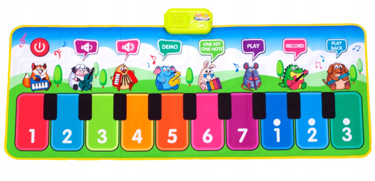 Килимок має 7-рівневий регулятор гучності. Електронний музичний блокнот може стимулювати розвиток слуху дітей, допомагати їм розпізнавати кольори, тварин і ноти.