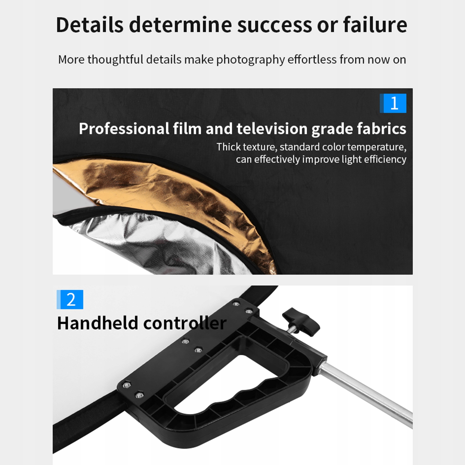 5. Компактний і портативний: постачається з сумкою для зберігання, світловідбиваючу пластину можна скласти в розмір 30 см для зручності подорожей і зберігання, що робить її чудовою для використання на вулиці та фотографування в дорозі.