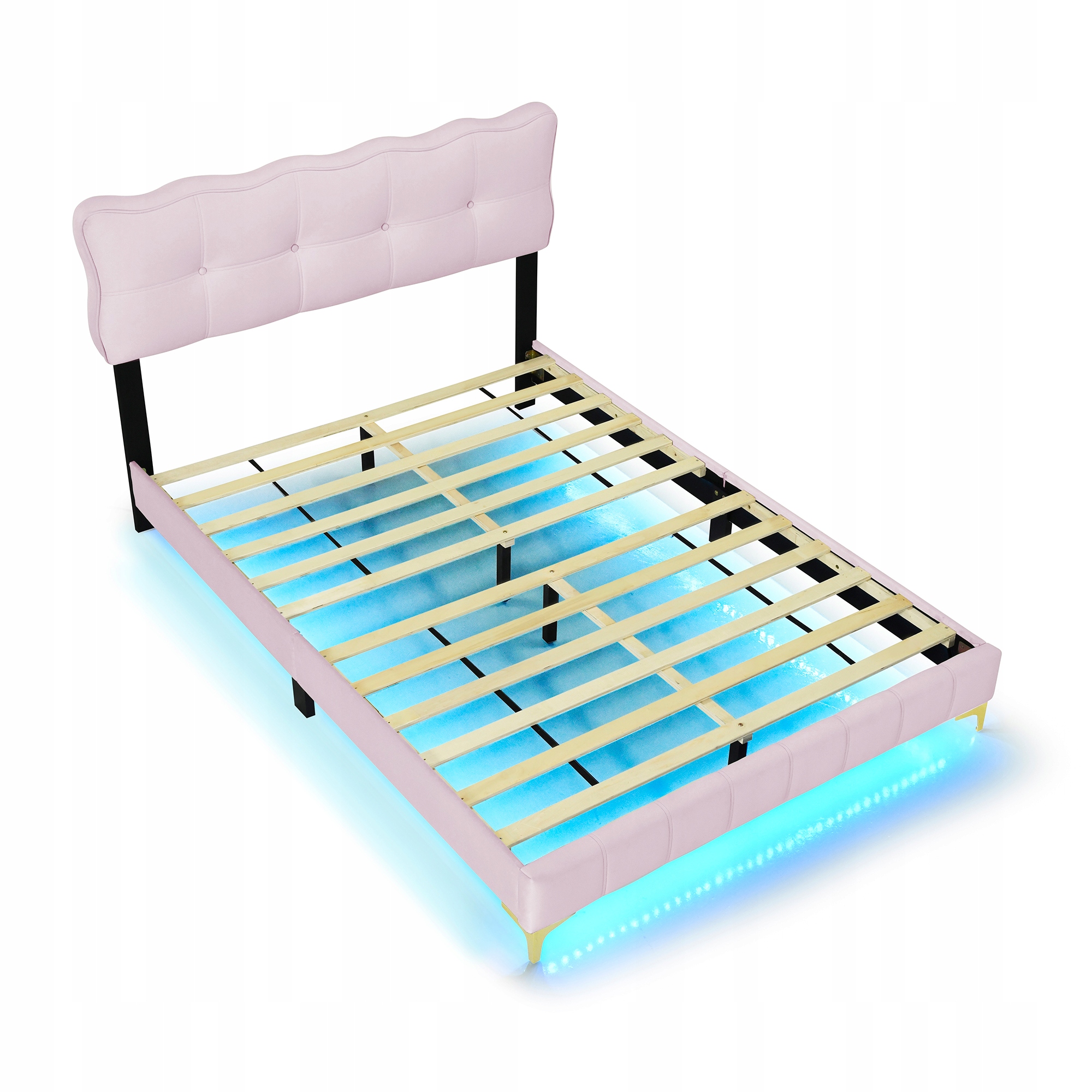 М'яке ліжко 140 х 200 см, двоспальне ліжко з світлодіодним освітленням рожевим