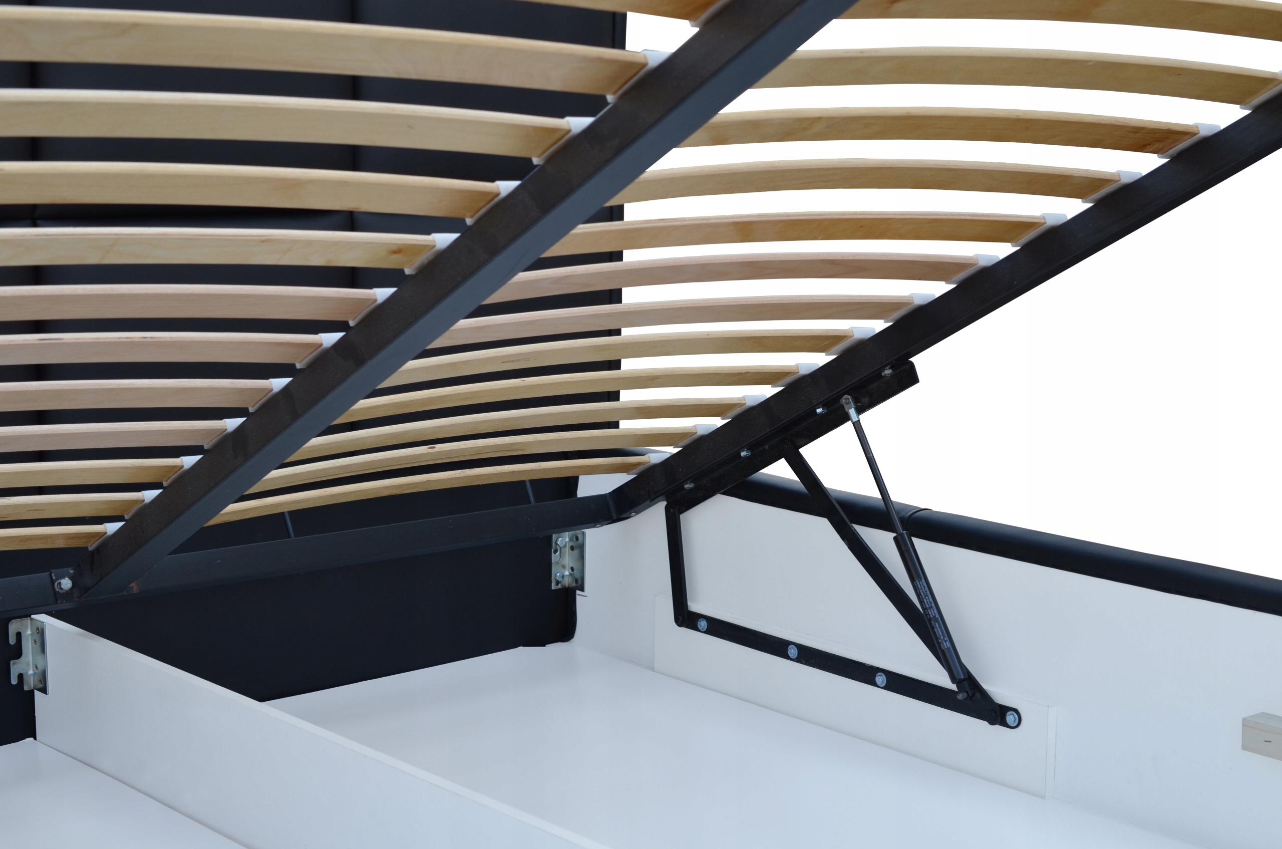 Надійний і міцний продукт. Виготовлений зі сталі для додаткового зміцнення конструкції. Ресорні планки з деревини бука з відмінними параметрами пружин і підвіски. Потужні газові приводи легко піднімають раму разом із матрацом, ковдрою та постільною білизною.