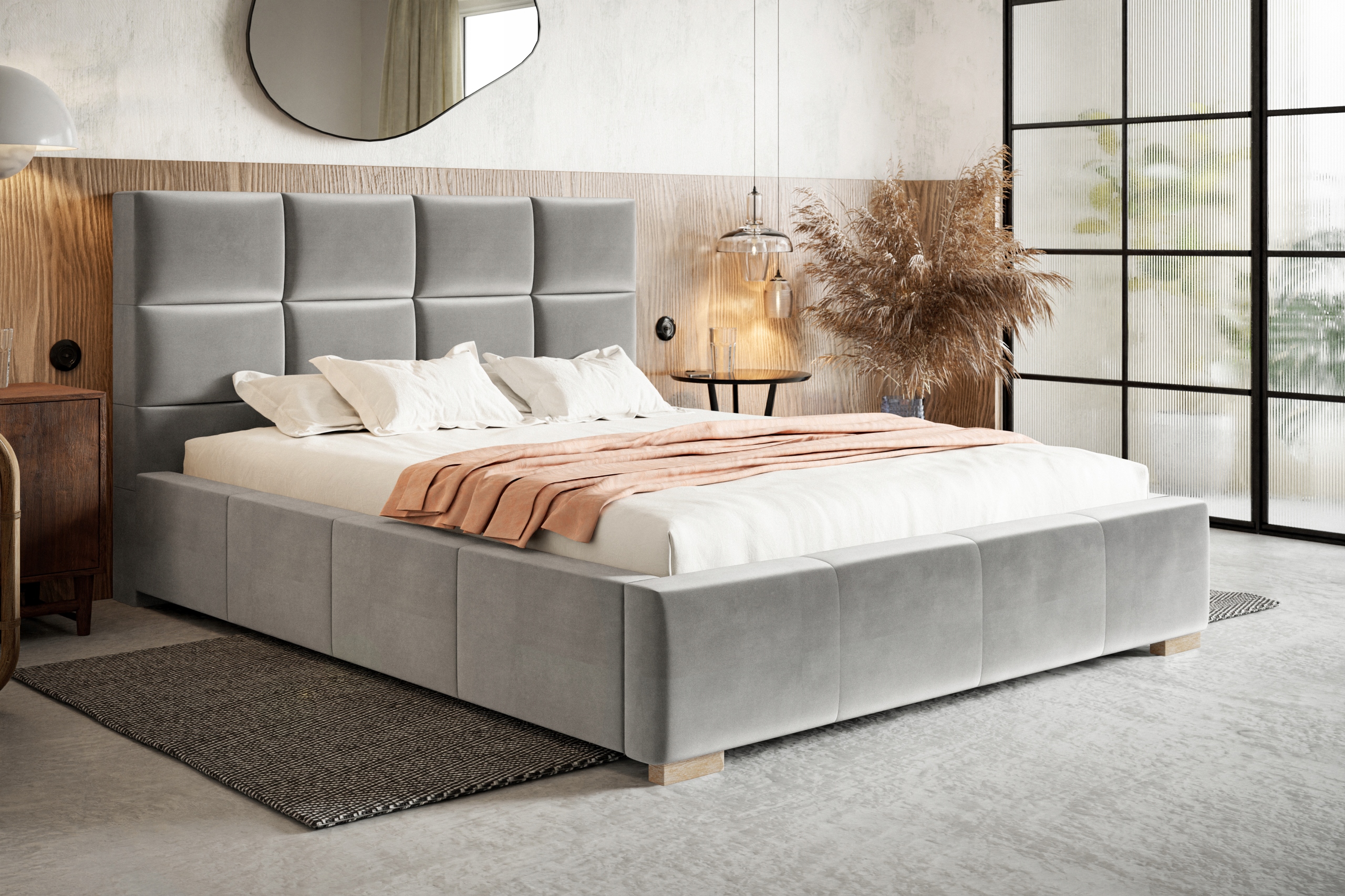 Ліжко Монако комплектується красивими дерев’яними ногами або хромованим для вибору, що додає естетиці та витонченості всьому проекту. Велика база ліжка гарантує, що простір для зберігання залишається без пилу, забезпечуючи при цьому вентиляцію матраца та підтримку необхідних. Ліжко monaco доставляється в плоскій упаковці, завдяки чому доставка -це проблеми -без легкого зібраного відповідно до крок за крок за крок за крок за крок.