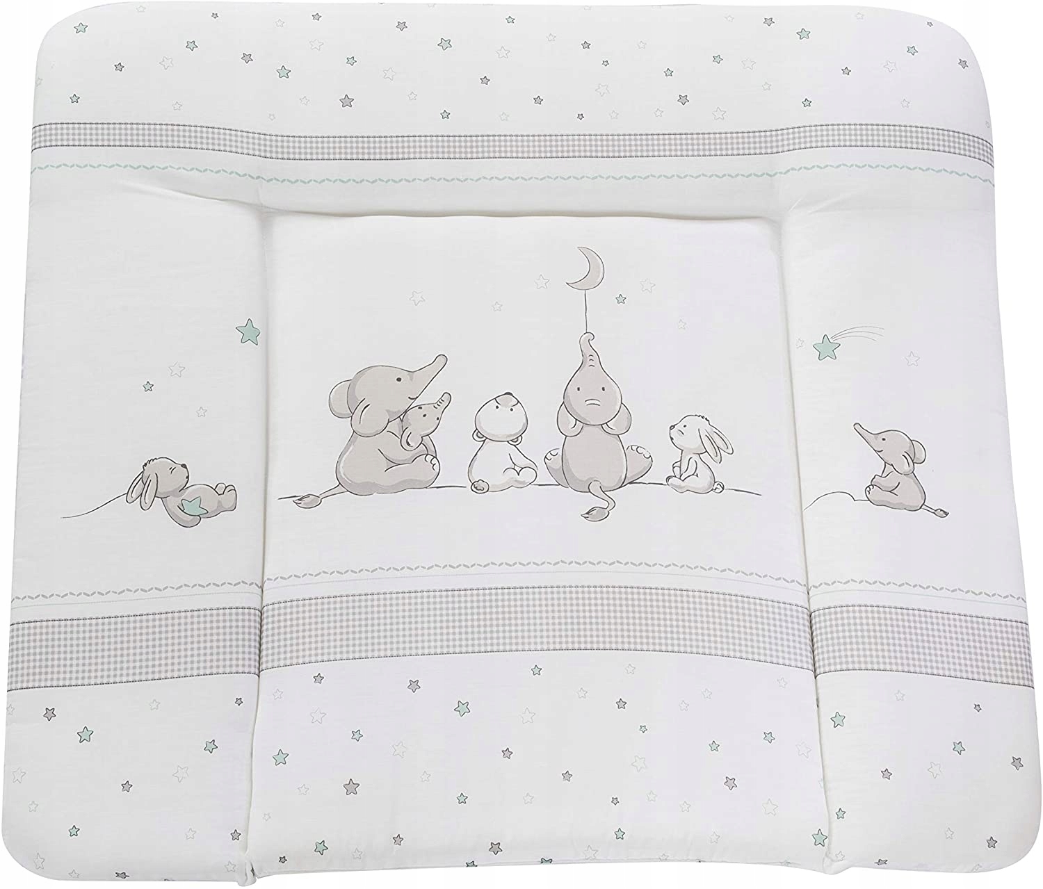 Матеріал особливо приємний на шкіру та приємний. Пеленальний килимок також дуже легко чистити. Килимок для сповивання виготовлений із суміші бавовни та поліестеру з поліуретановим покриттям без вмісту фталатів і має м’яку підкладку, щоб забезпечити комфорт вашій дитині.