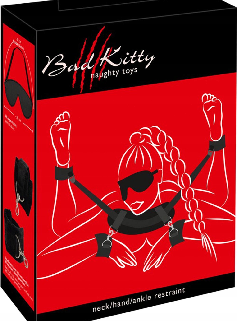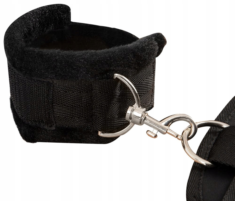 Комфортні манжети-наручники підбиті м’яким плюшем і легко регулюються міцними застібками-липучками для ідеальної посадки. Довжина з’єднувального ремінця, який веде до манжет на щиколотці, регулюється.