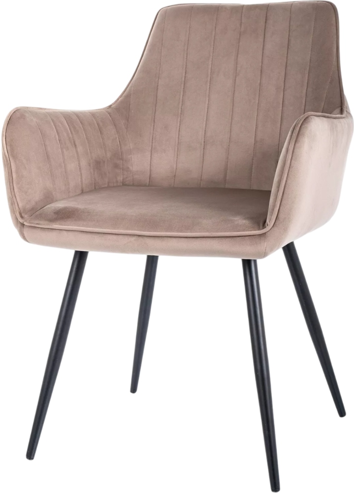 бежевим стьобаним кріслом з металевими ногами поєднує елегантний стиль та функціональність. Оксамитова оббивка, прикрашена мотивом квілінгу, забезпечує тут ексклюзивний вигляд, а також використовувані матеріали та структурні рішення, необхідні практичні та корисні значення. оксамитовий м'який стілець має достатньо глибоке сидіння, підлокітники та спинки, що зміцнює відчуття комфорту та зручності при сидінні. Така модель, завдяки своїй функціональній та універсальній можливостях, успішно знайде влаштовану в їдальні, вітальні та спальні, наприклад. як стілець для столу, столу або одягальних столів.