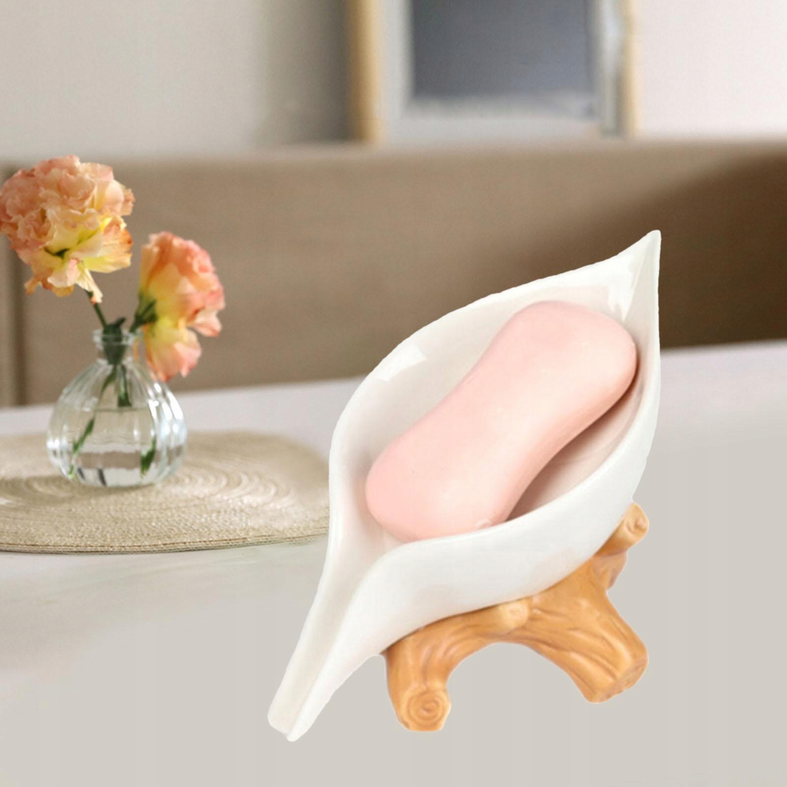 Mydelniczka łazienkowa w kształcie liścia Łatwa w czyszczeniu mydelniczka z kikutem Biżuteria Biała
