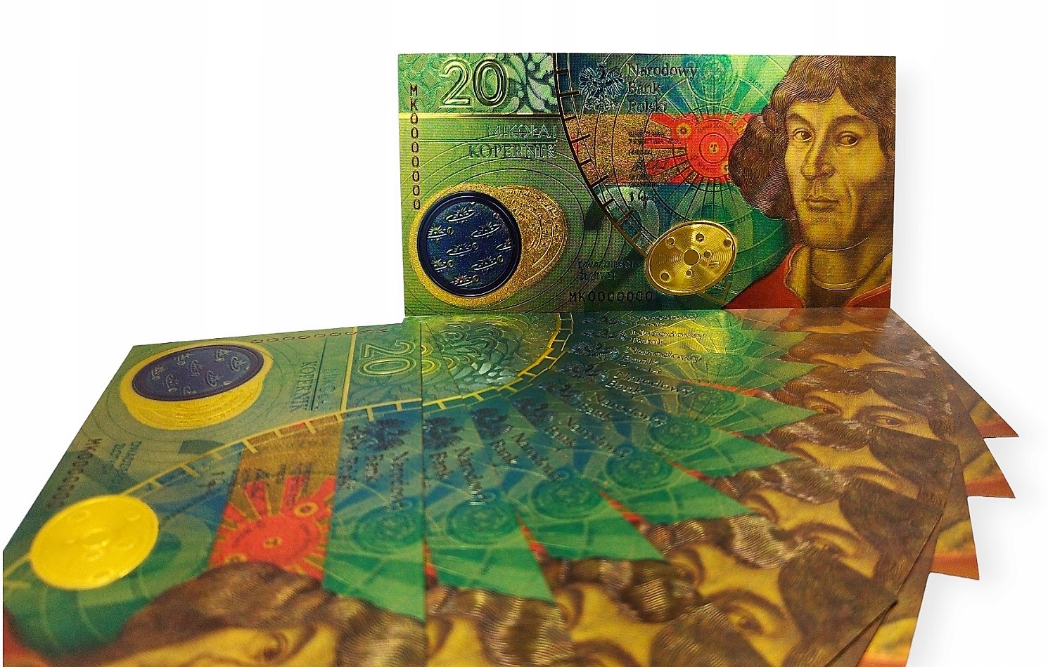 Красива колекційна банкнота 20 злотих Миколай Коперник.