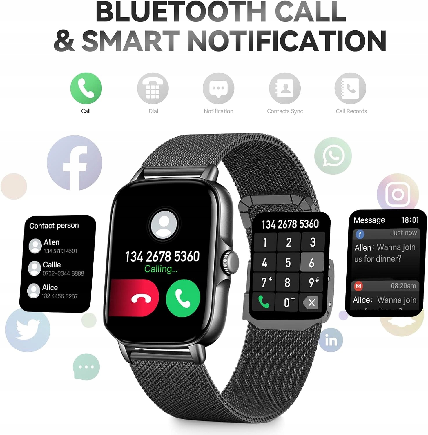 N840 EIGIIS Smart Watch dla mężczyzn i kobiet 1,69" zegarek z Bluetooth