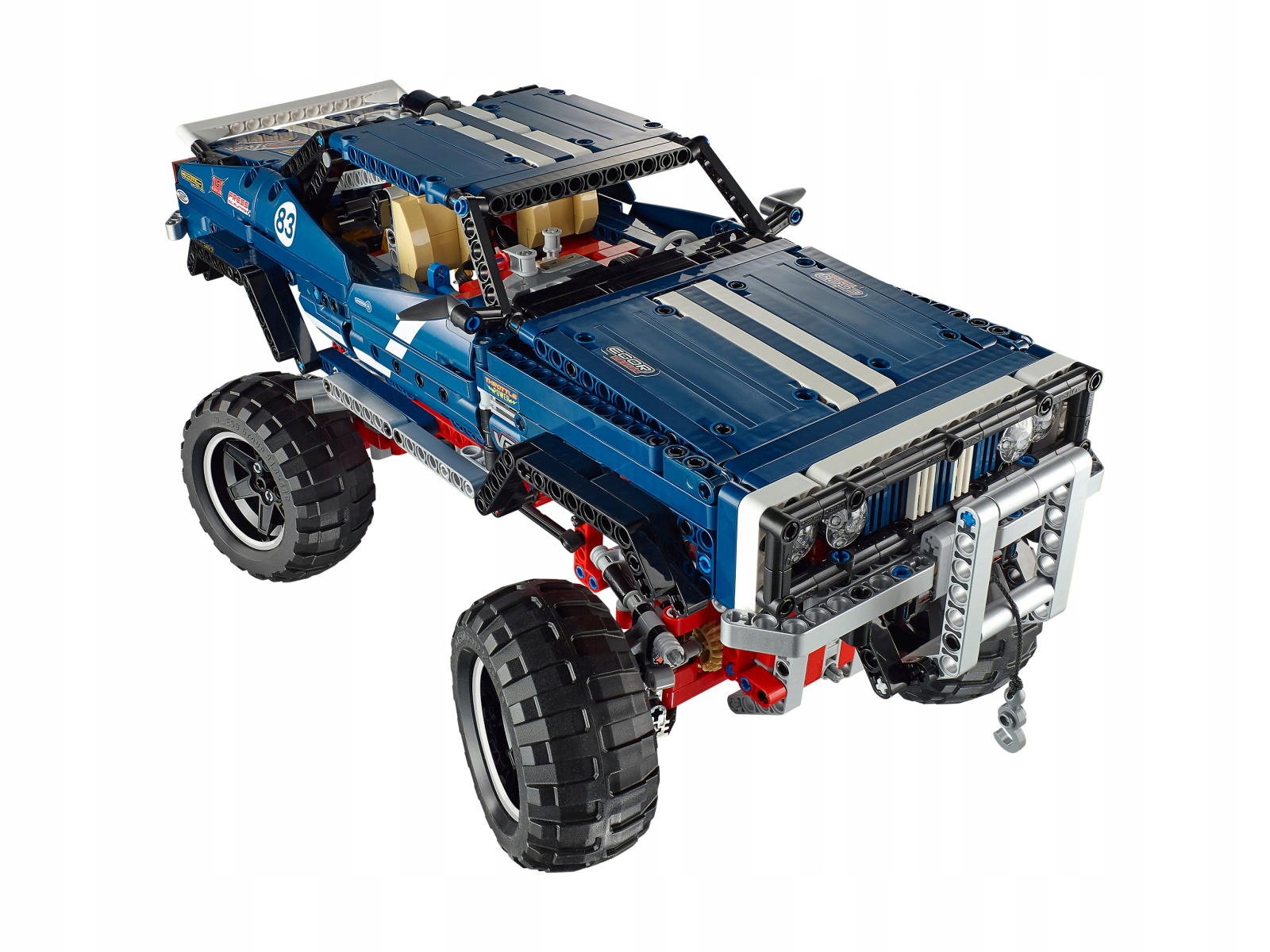 Багато з 1585 елементів недоступні в жодному іншому наборі – кузов унікального темно-синього кольору, новинка в наборах Technic, металеві срібні бампери або навіть колісні диски з білими кільцями. Щоб долати найбільші перешкоди та найкрутіші схили, цей міцний транспортний засіб оснащений усіма необхідними елементами моделі Lego Technic, такими як потужна підвіска, чотириколісна кермування та незалежна підвіска кожного колеса!