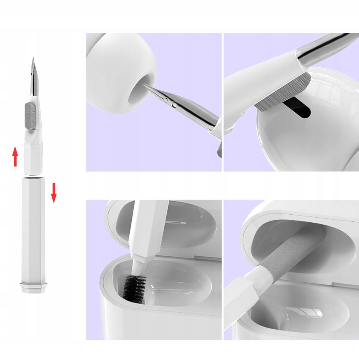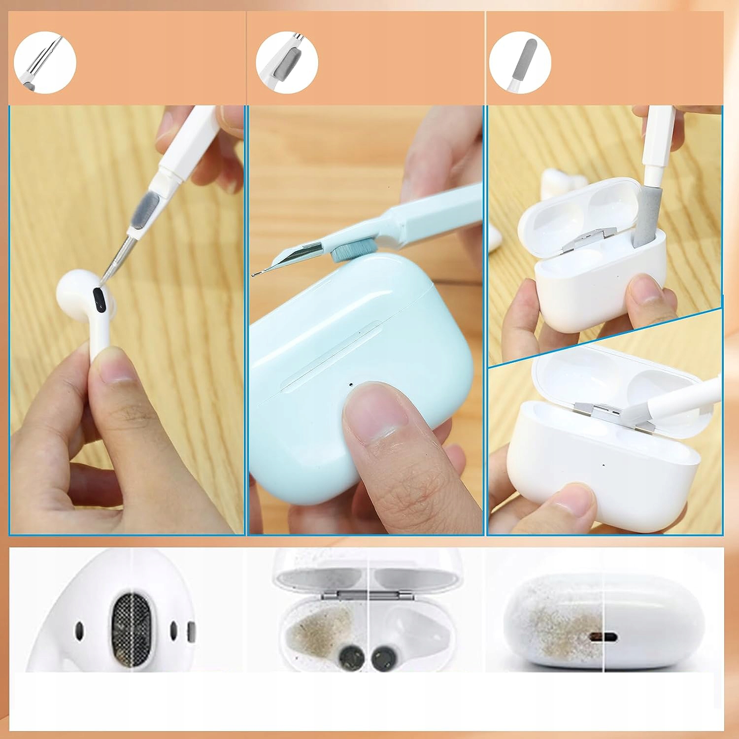 Очищення портів для телефону та навушників: очищувач Airpod має наконечник, невелику щіточку для ліктів і маленьку щіточку з м'які щетинки, які дозволяють дістатися до важкодоступних місць, легко видаляють пил і плями з портів мобільних телефонів і планшетів, продовжують термін служби ваших пристроїв. За допомогою цього інструменту ви можете легко видалити навіть стійку вушну сірку та бруд із навушників і зарядного футляра.