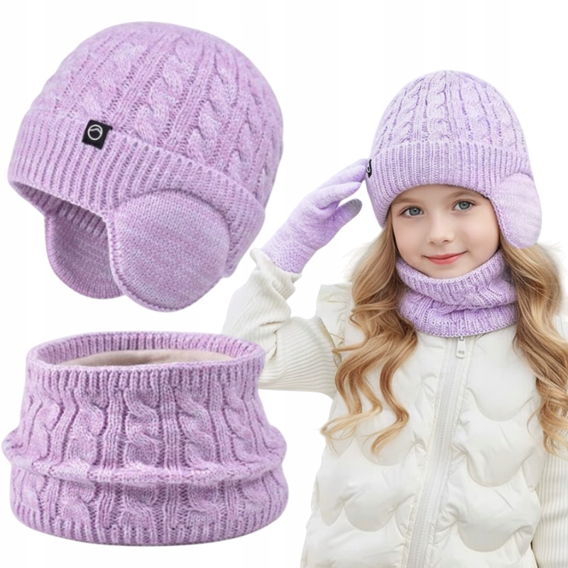 НАБІР 3 В 1 ЗИМОВИЙ для дівчинки ФІОЛЕТОВИЙ ШАПКА ДИМОХІД РУКАВИЧКИ