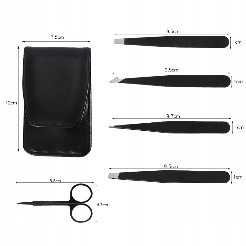 Набір містить 4 різні пінцети та ножиці, що дозволяє швидко та точно сформувати брови, видаливши небажане волосся.