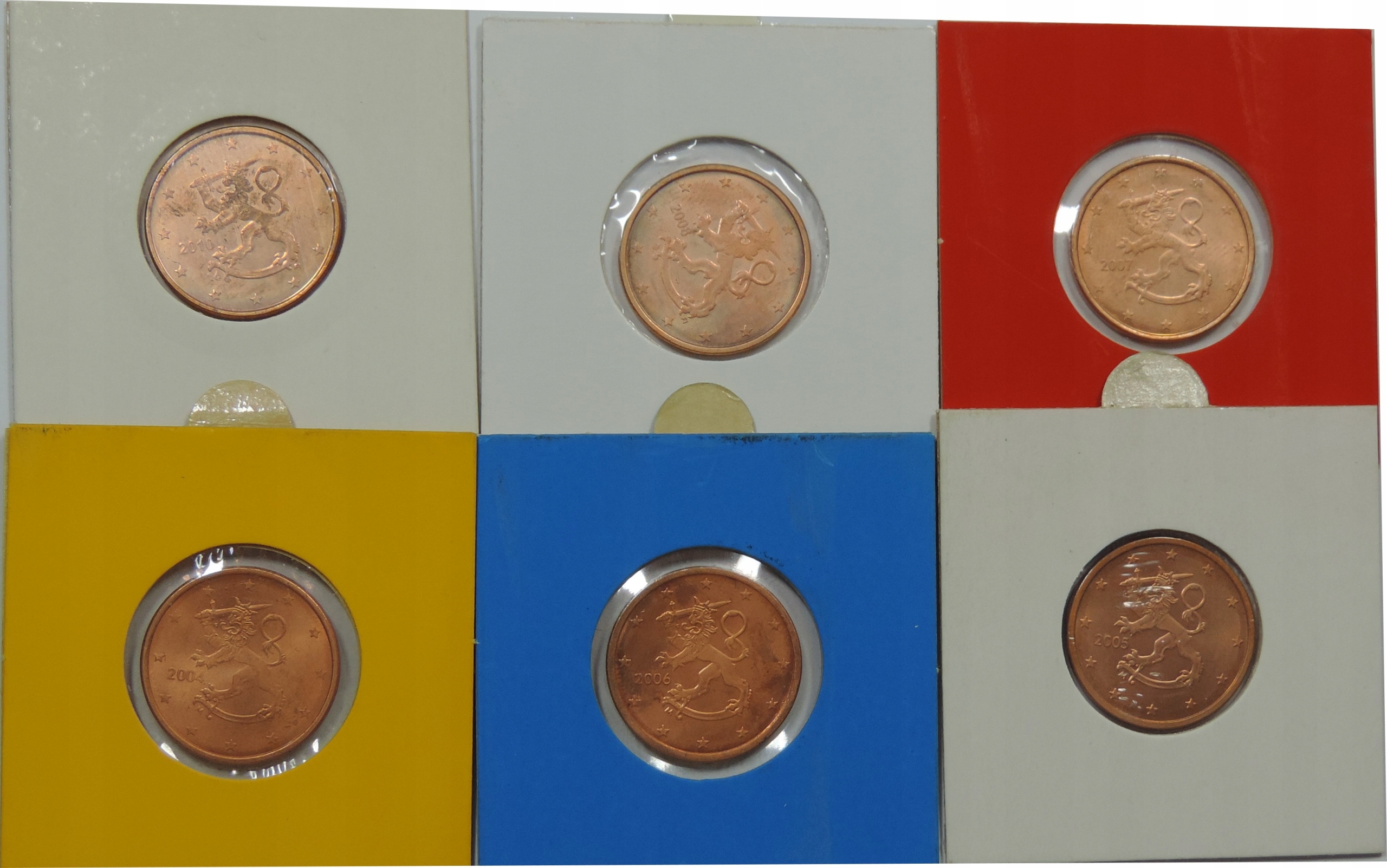 НАБІР 6x 5 ЦЕНТІВ МІКС - ВИПАДОК - КРУГЛИЙ - ФІНЛЯНДІЯ -OY9449