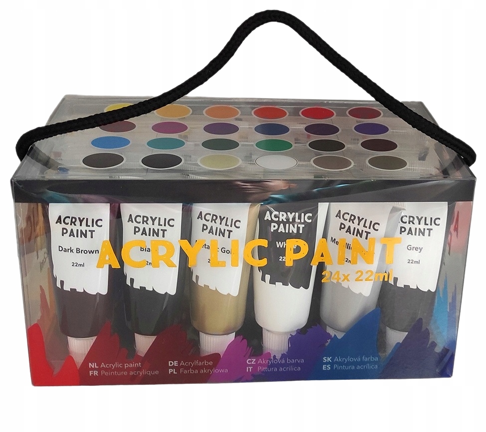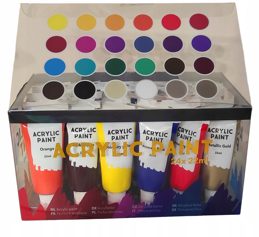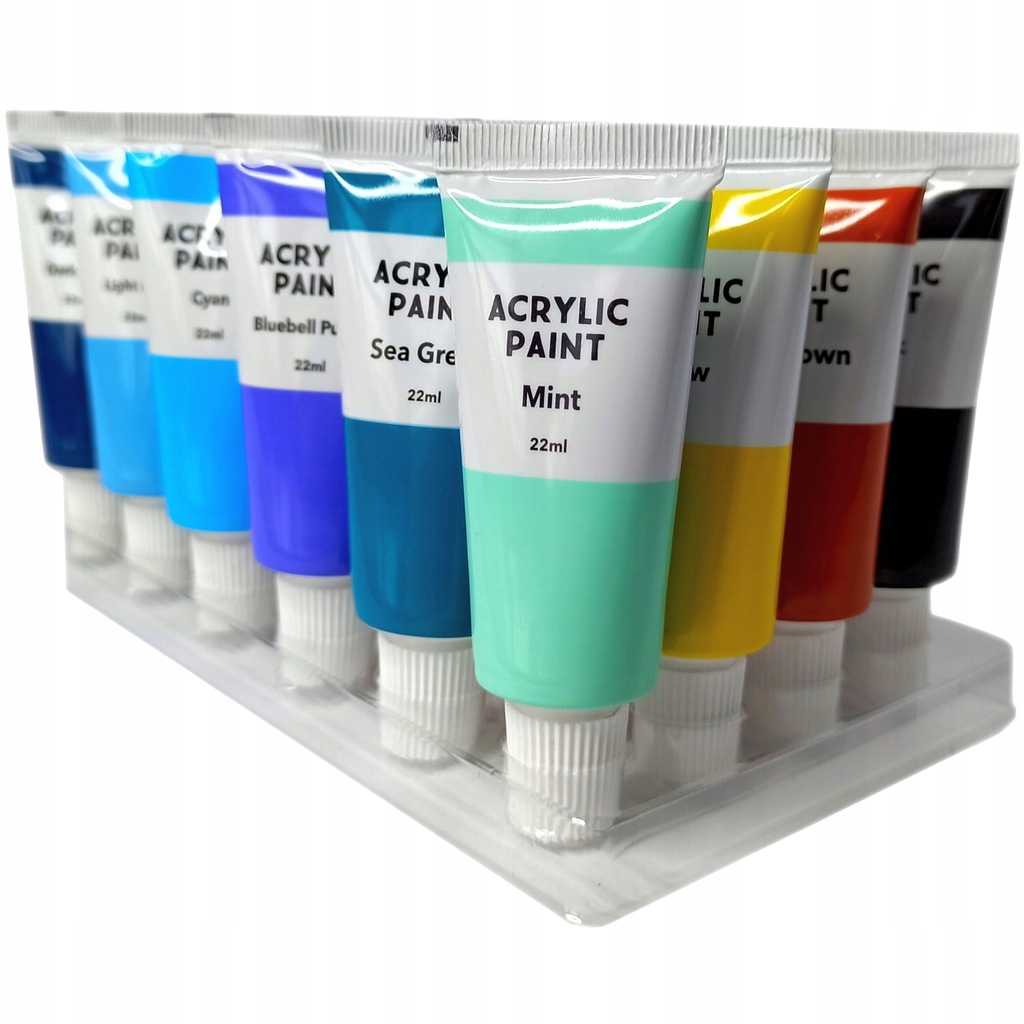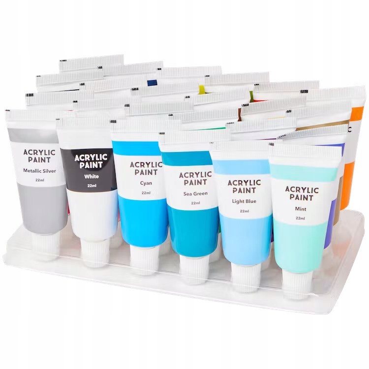 НАБІР АКРИЛОВИХ ФАРБ 22 МЛ або картон, але також можна використовувати акрилові фарби для малювання дерева, скла або глини. Роботи, створені за допомогою акрилових фарб, мають яскраві та стійкі кольори.