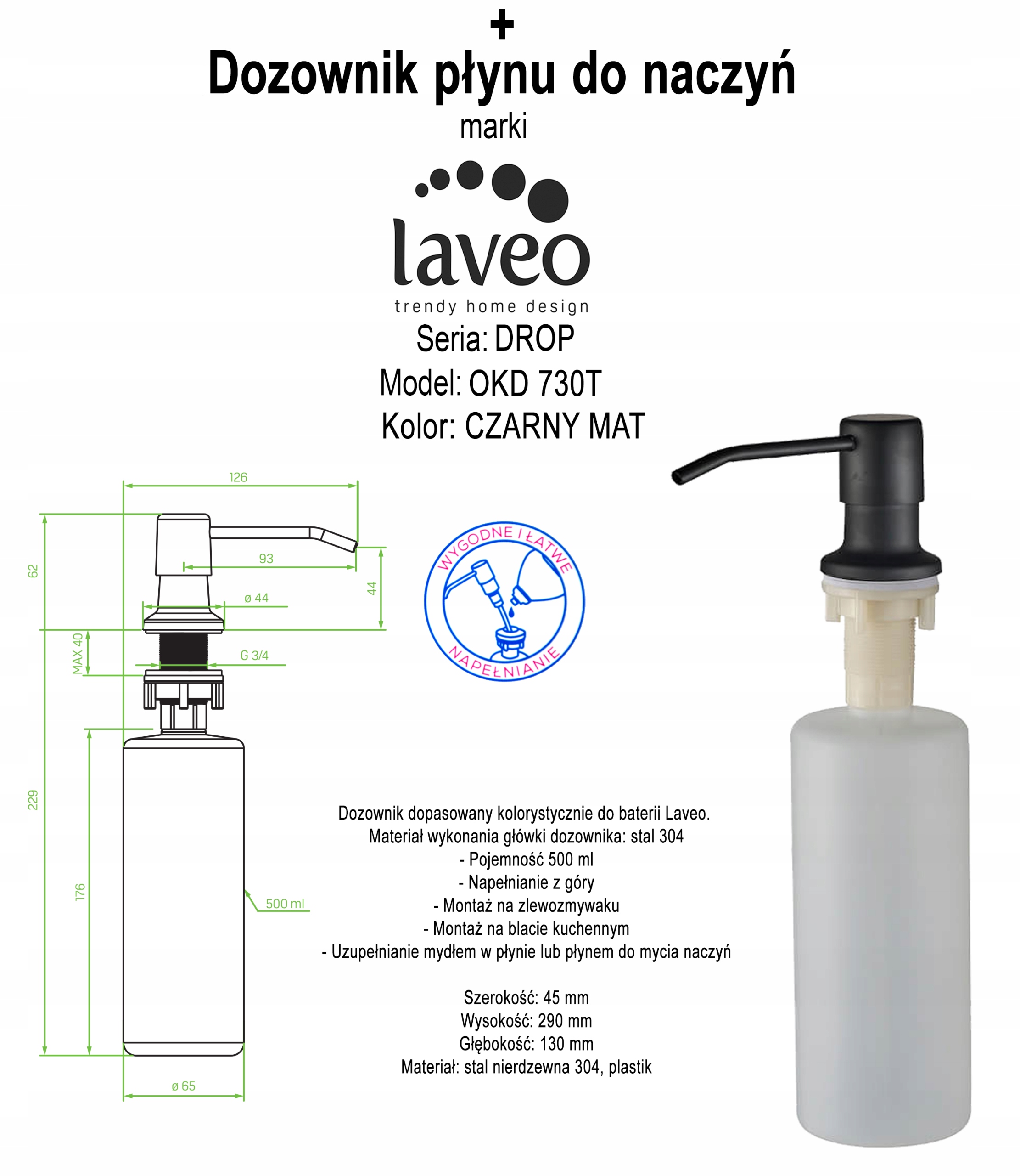 Просматривая «Black Laveo Nalda Battery Set+Drop Dispenser», вы можете быть уверены, что данный товар из каталога «[rubrica_name]» будет доставлен из Польши и проверен на целостность. В цене товара, указанной на сайте, учтена доставка из Польши. Внимание!!! Товары для Евросоюза, согласно законодательству стран Евросоюза, могут отличаться упаковкой или наполнением.