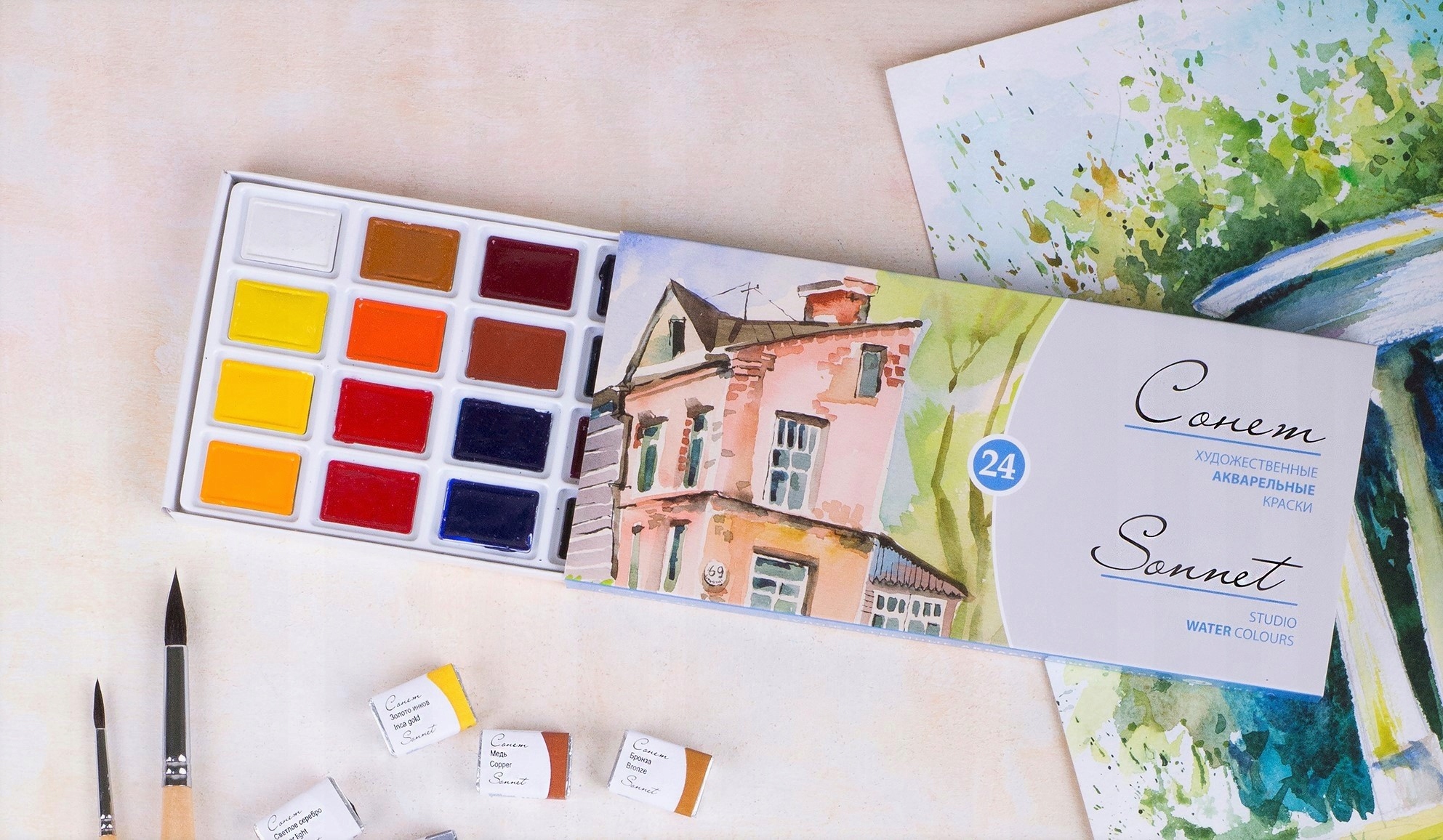 АКВАРЕЛЬ НАБІР ФАРБ СОНЕТ 24 кольори ОРИГІНАЛ
