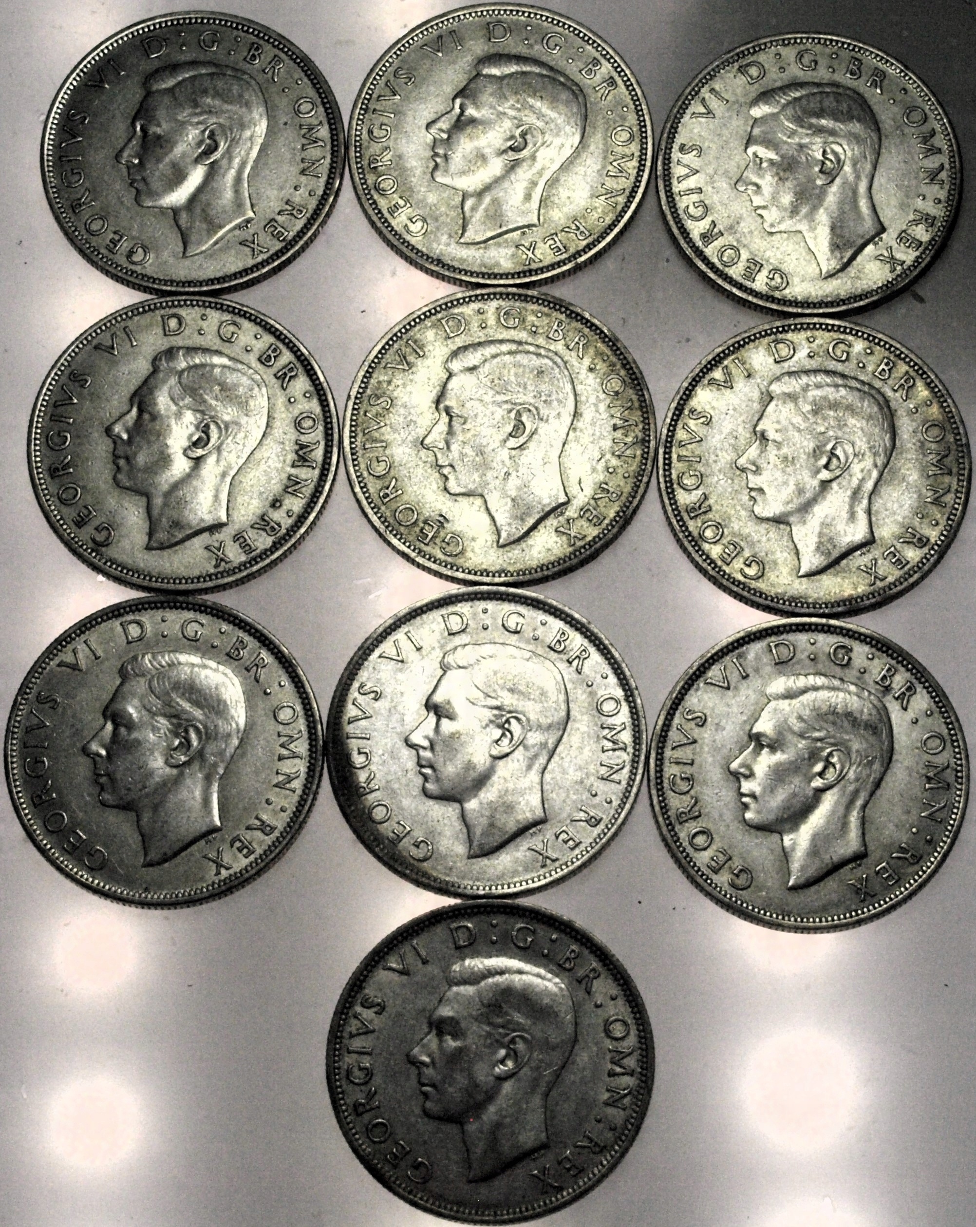 Набір Англія Великобританія ЛОТ 10x півкрони 1946 Георг VI Георг СРІБЛО