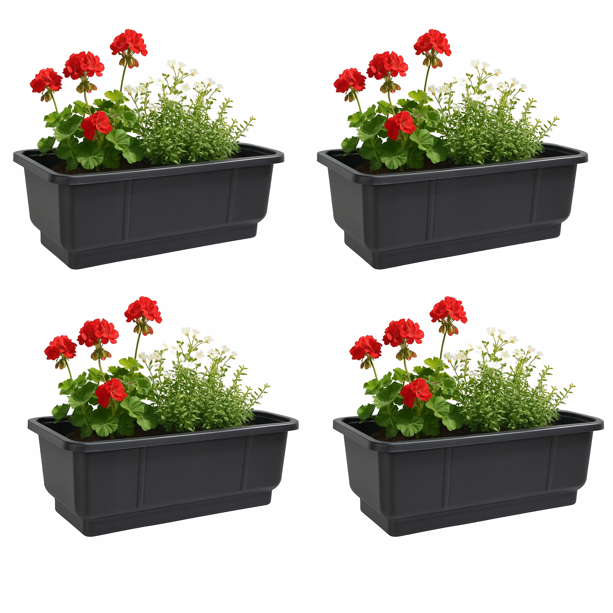 Набір балконних горщиків з 4 х чорними підставками для рослин квітів