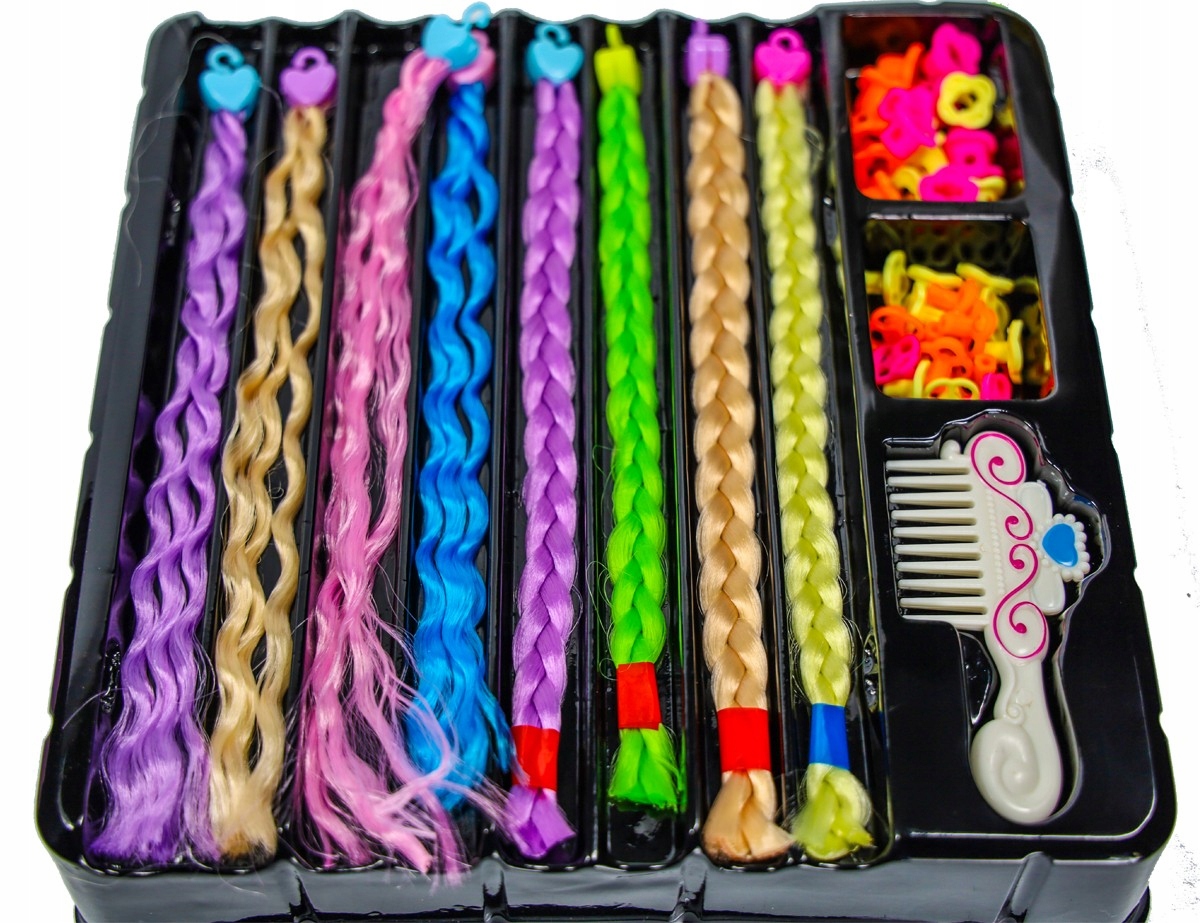 Набір містить 6 різнокольорових БЕЗПЕЧНИХ пасом, які не зашкодять волоссю вашої дитини. Спеціальна застібка, закріплена на волоссі, буде утримувати пасмо за допомогою гачка.