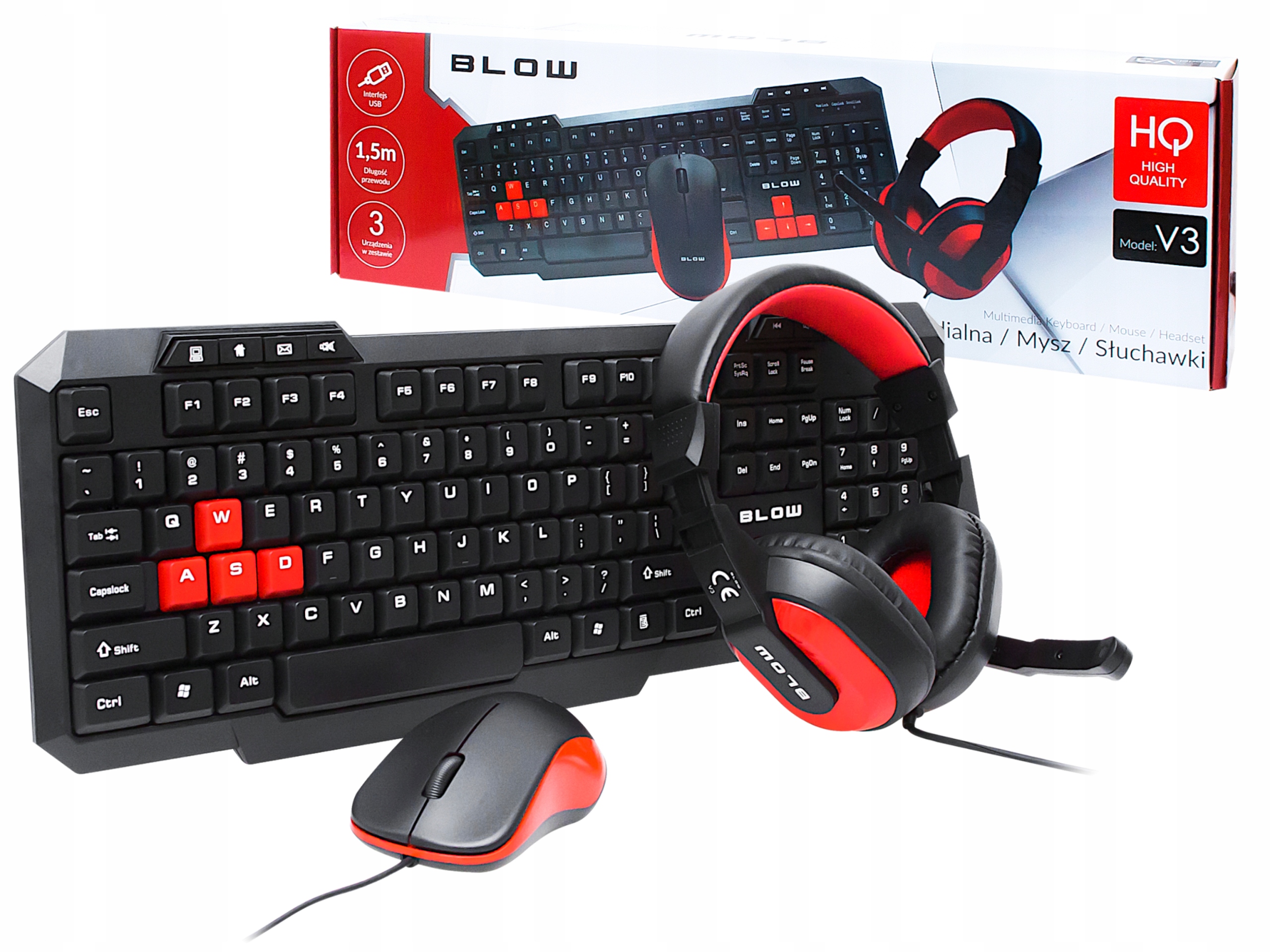 Провідний набір від BLOW, що складається з клавіатури, мишки та навушників однакового чорного та червоного кольорів. Набір ідеально підійде не тільки для роботи або онлайн-зустрічей, а й для юних комп'ютерних ігор.