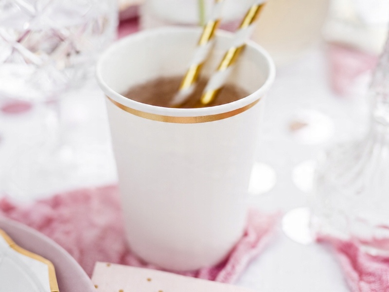 Білі паперові стакани з золотистими металізованими краями — фантастичний гаджет, ідеальний для святкування дня народження.