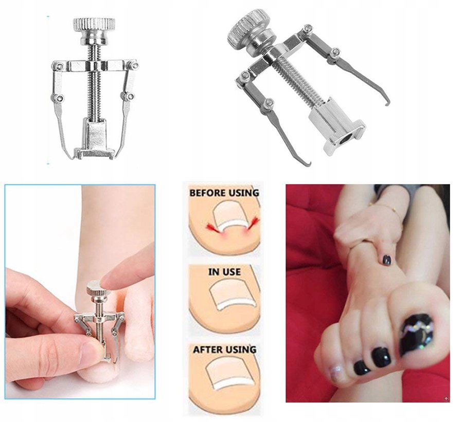 - Покладіть затискач на ніготь, зачепивши сторони врослого нігтя гачками, і затягніть.