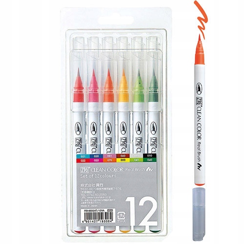 Набір чистих кольорів справжніх пензлів Kuretake із 12 ручок для пензлів Basic