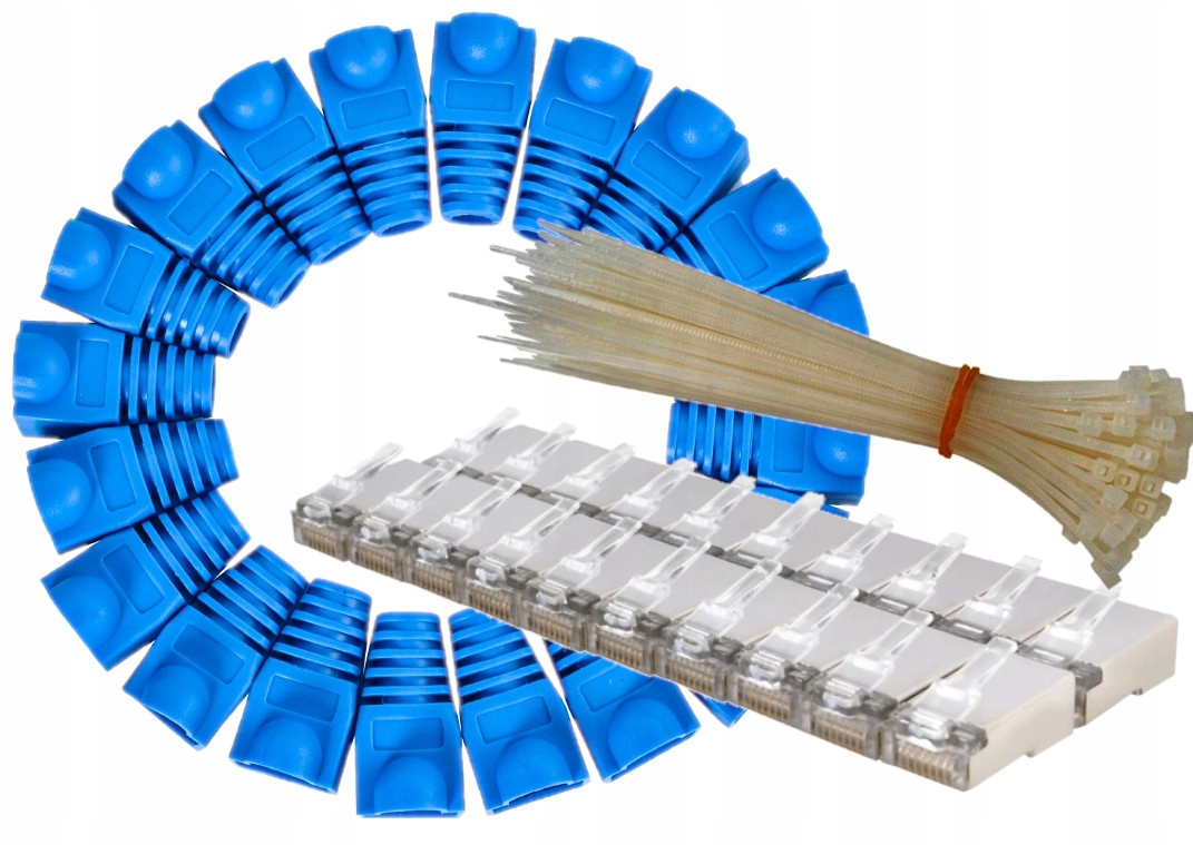 Набір містить 20 штекерів і 20 заглушок. Штекери виготовлені з міцного пластику, що характеризується високою стійкістю до механічних пошкоджень, найчастіше використовується для завершення кабелів типу вита пара (UTP, STP). Кришки запобігають поломці затискача вилки та проникненню вологи та пилу.