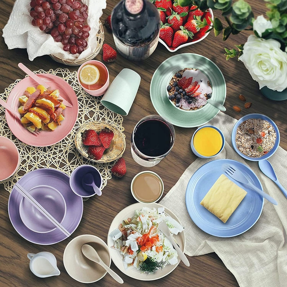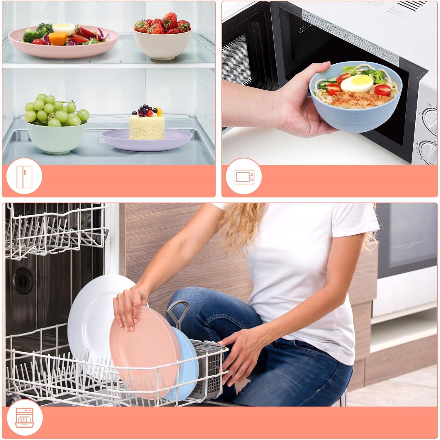🍀 Пакет включає: Цей непорушний набір посуду включає 4 тарілки, 4 миски, 4 чашки та 4 набори столових приборів. b> p>