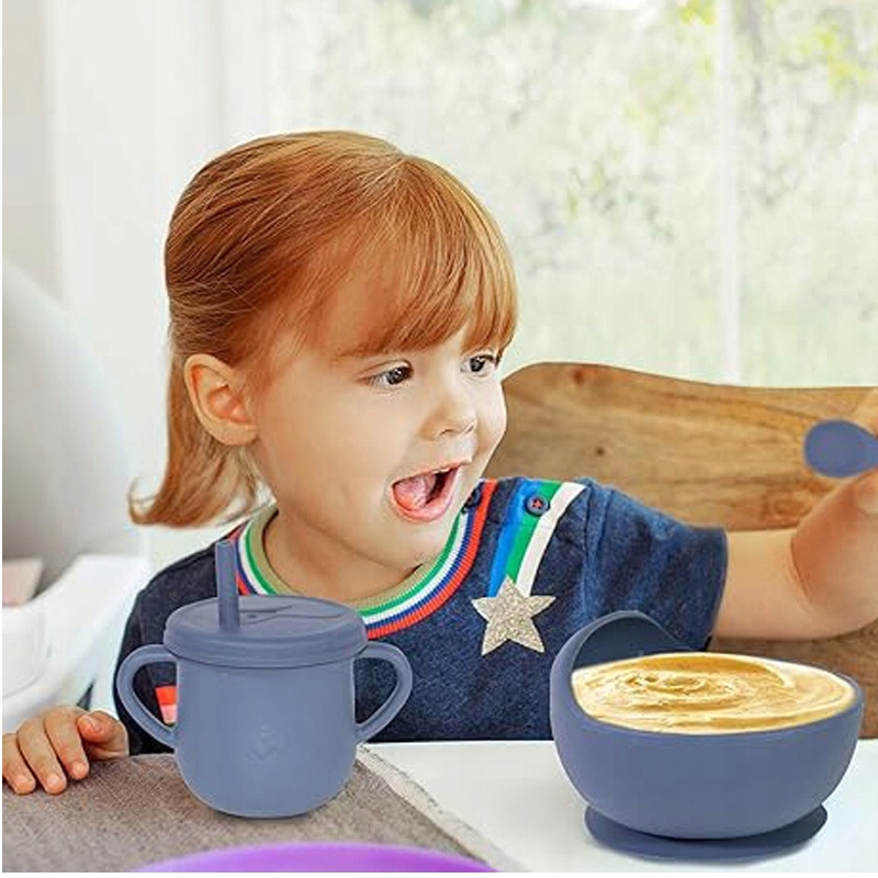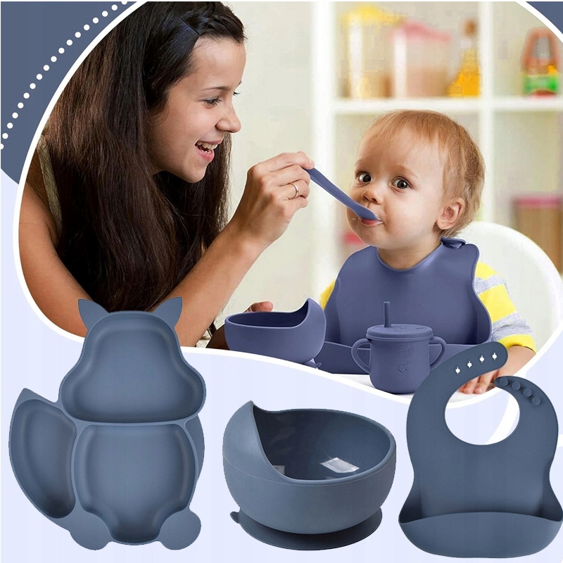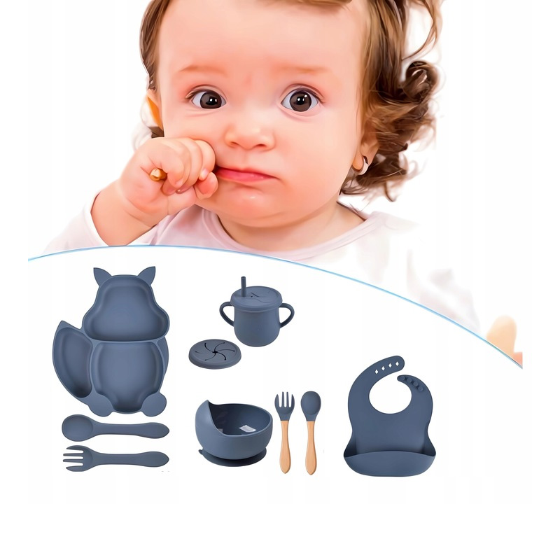НАБІР СИЛІКОНОВОГО ПОСУДУ ДЛЯ ДИТЯЧІВ З ПРИСОСОЮ 8 EL BLUE