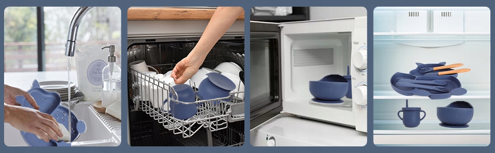 Наш силіконовий набір їжі виготовлено з високоякісного 100% харчового силікону. Він м'який, міцний, не має запаху та нетоксичний. Цей набір не містить BPA, PVC, свинцю, фталатів і є екологічно чистим.