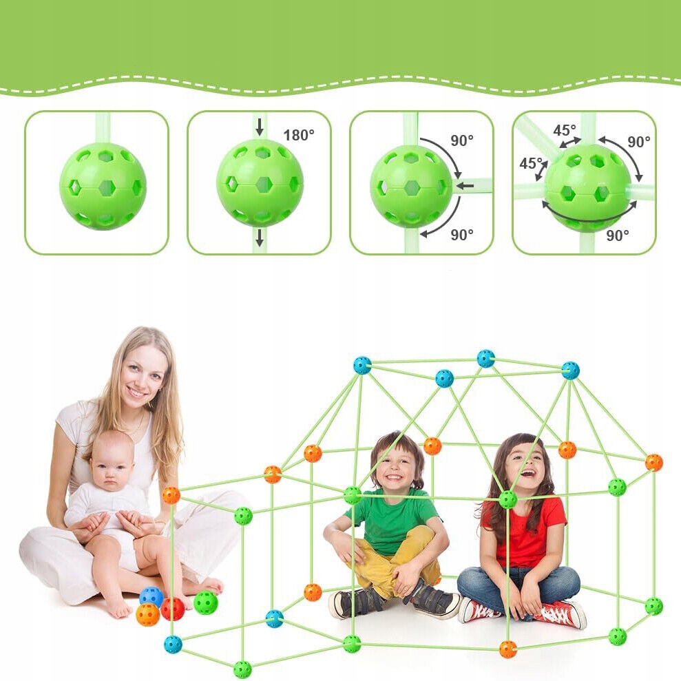 👍👍 【Набір своїми руками】 Іграшка-фортеця містить 77 з’єднувальних кульок, 102 будівельних стрижня. Тканина намету буде доставлена випадковим чином. Діти можуть будувати власні архітектурні проекти різних форм і розмірів!