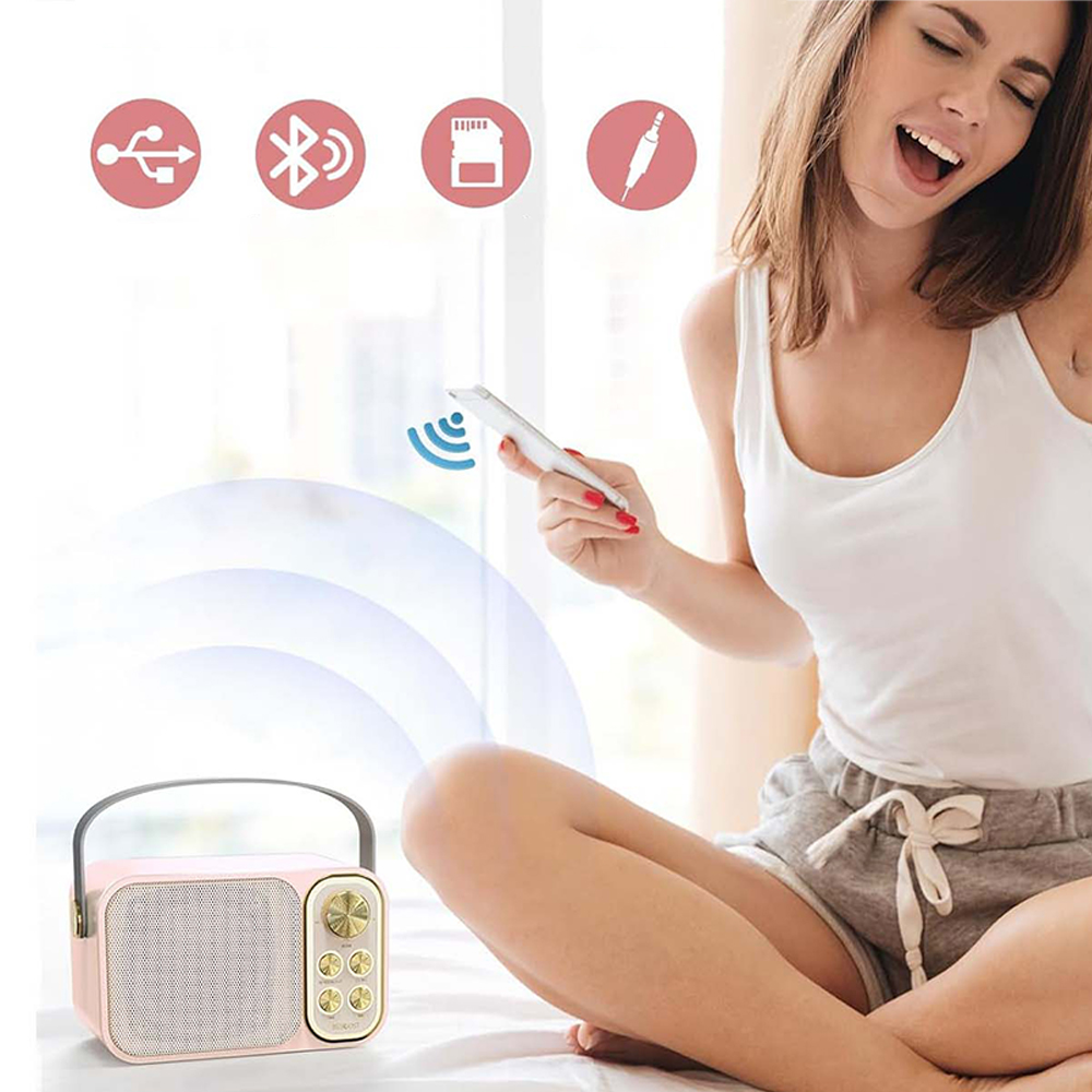 Міні-караоке-машина не лише використовує найновіший чіп Bluetooth 5.0, але також підтримує TF-карту, флеш-пам’ять USB і підключення AUX.