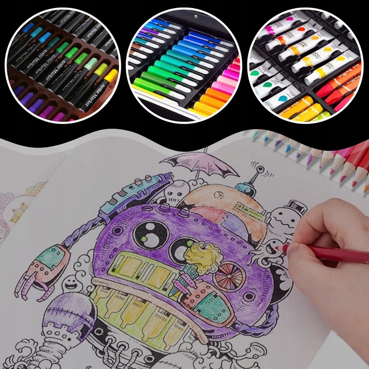 ✔️Універсальний набір творчих інструментів✔️Цей набір містить абсолютно все, що потрібно маленькому художнику, щоб проявити свою творчість. Кольорові олівці, фломастери, пастель, фарби та багато інших інструментів дозволять вашій дитині розвинути свої художні навички та пробудити уяву.
