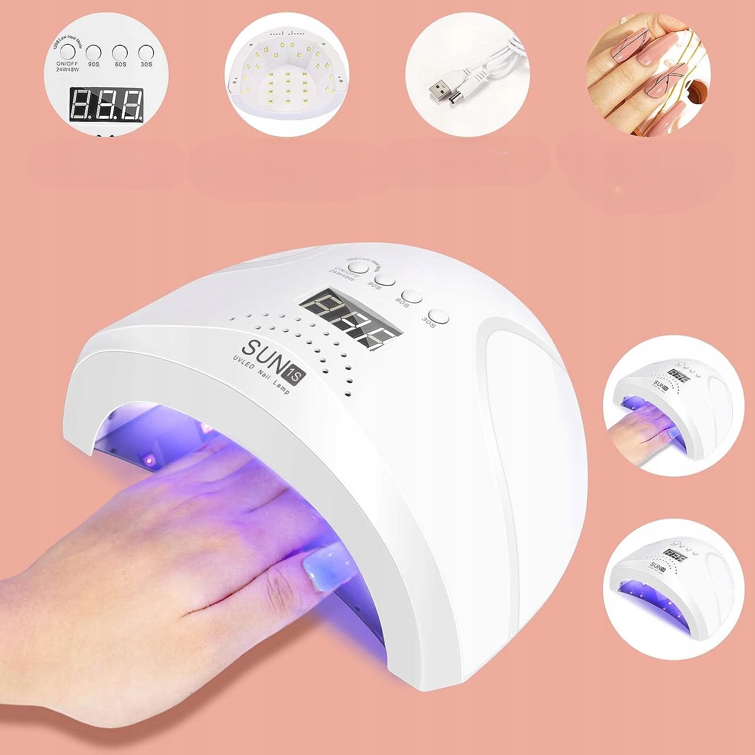 - УФ світлодіодна лампа: лампа 48 Вт, оснащена 30 світлодіодними лампочками. Він працює автоматично і має цифровий дисплей. Сумісний з УФ та LED гелями для нігтів усіх марок.