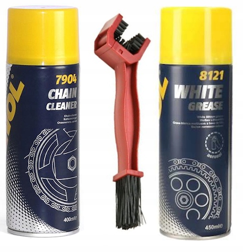 MANNOL 7904 Очисник для ланцюга 400 мл + MANNOL 8121 White Grease 400 мл + ЩІТКА