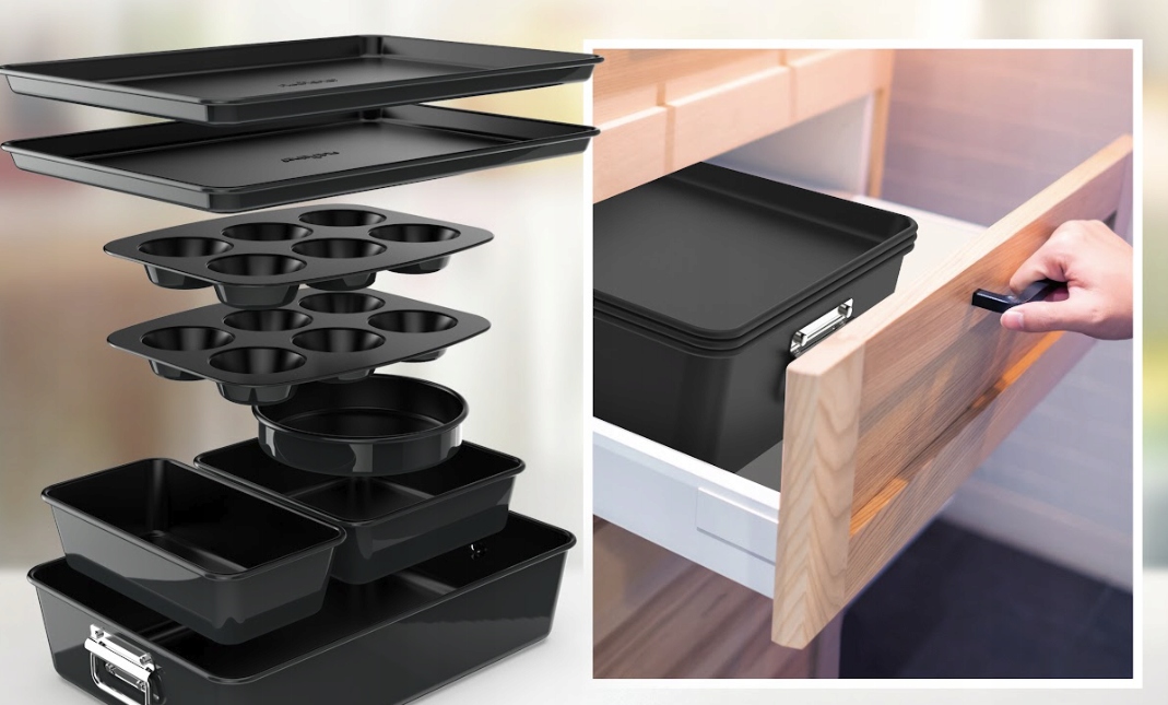 ✅ Продуманий дизайн – тонкий дизайн, який можна складати, дозволяє легко зберігати на кухні. Набір сумісний із традиційними духовками, конвекційними печами та тостерами.
