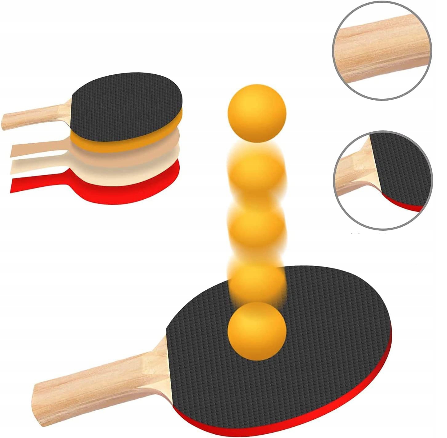 - Цей набір ракеток для настільного тенісу включає 2 ракетки для настільного тенісу, 6 м’ячів для настільного тенісу, висувну сітку для настільного тенісу та сумку зі шнурком.