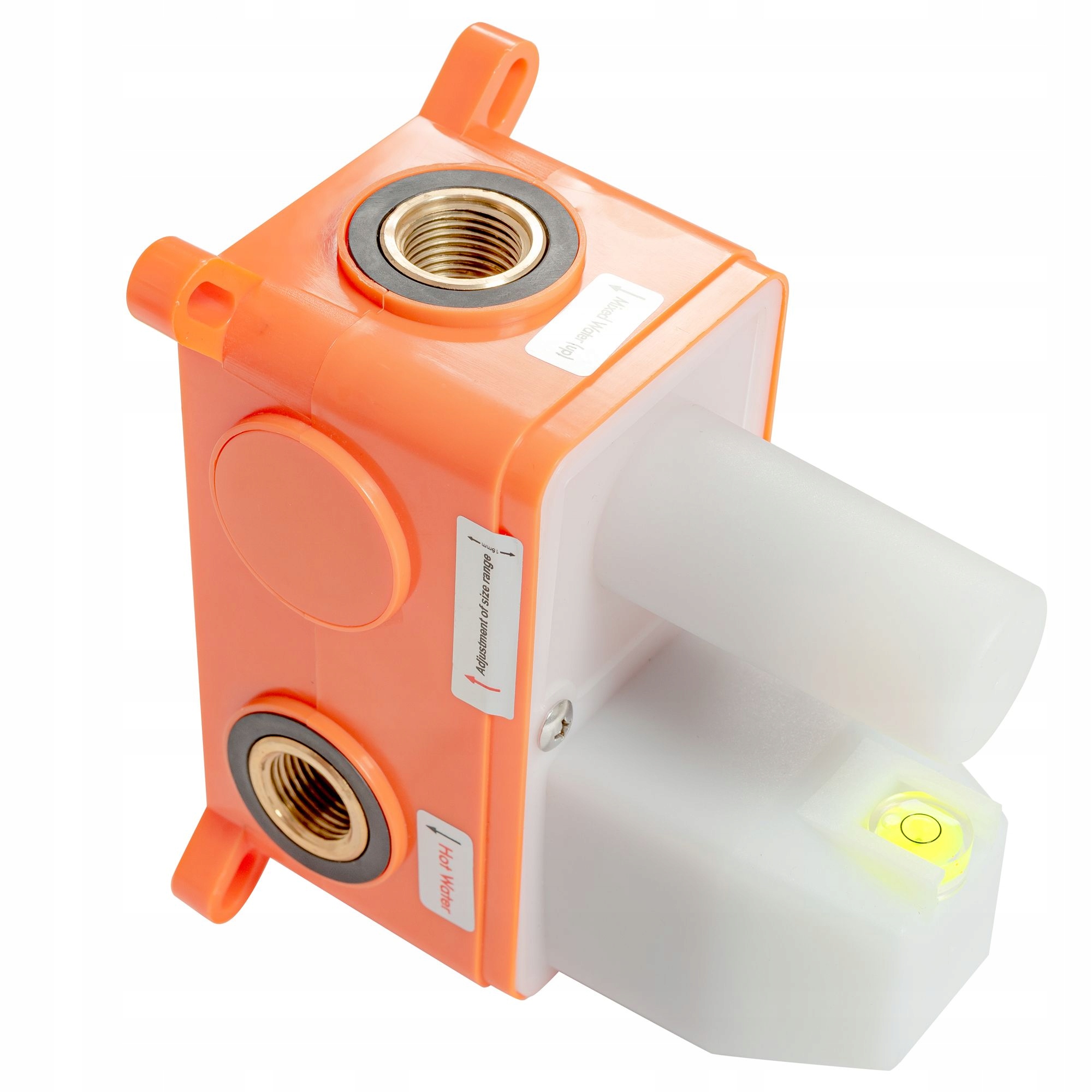 Представляємо інноваційну систему Box для встановлення прихованого змішувача. Система забезпечує зручний і швидкий монтаж. Виготовляється з пластикових і латунних внутрішніх елементів, що гарантує високу якість і надійність. Елемент оснащений маскувальною частиною, яка захищає внутрішні елементи під час складання, і рівнем, який сприяє правильному і точному монтажу. Система забезпечує легкий доступ до внутрішніх компонентів батареї після встановлення з метою обслуговування.