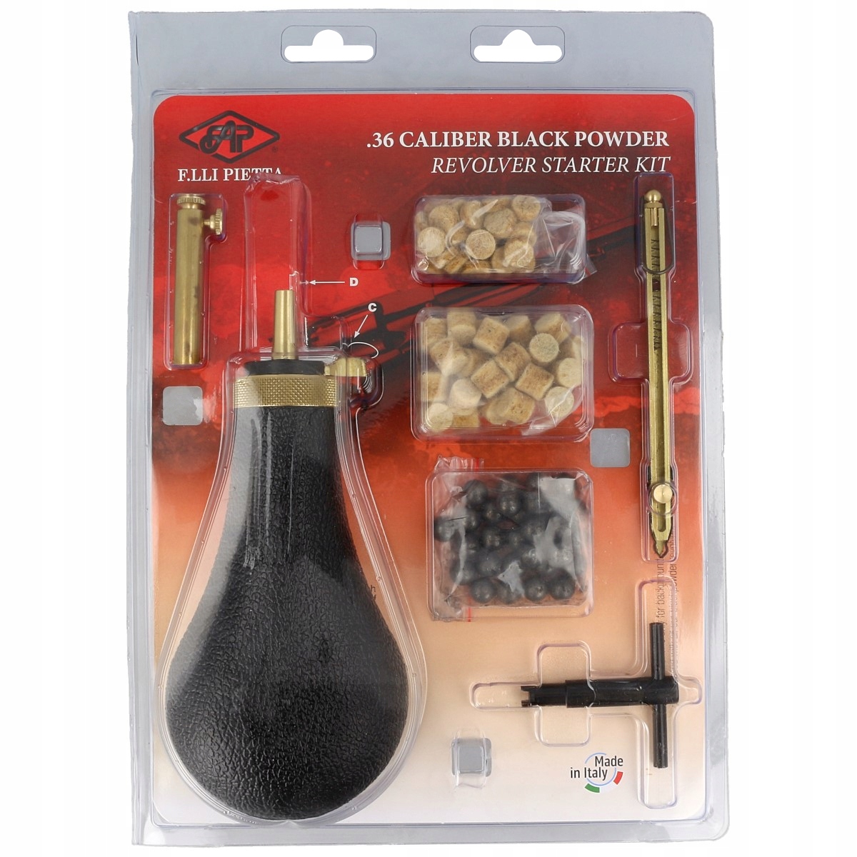 Набір для револьвера з чорним порохом Pietta Kal 36 - набір для людей, які тільки починають свою пригоду зі зброєю з чорним порохом. Містить основні аксесуари, що дозволяють стріляти з револьвера.