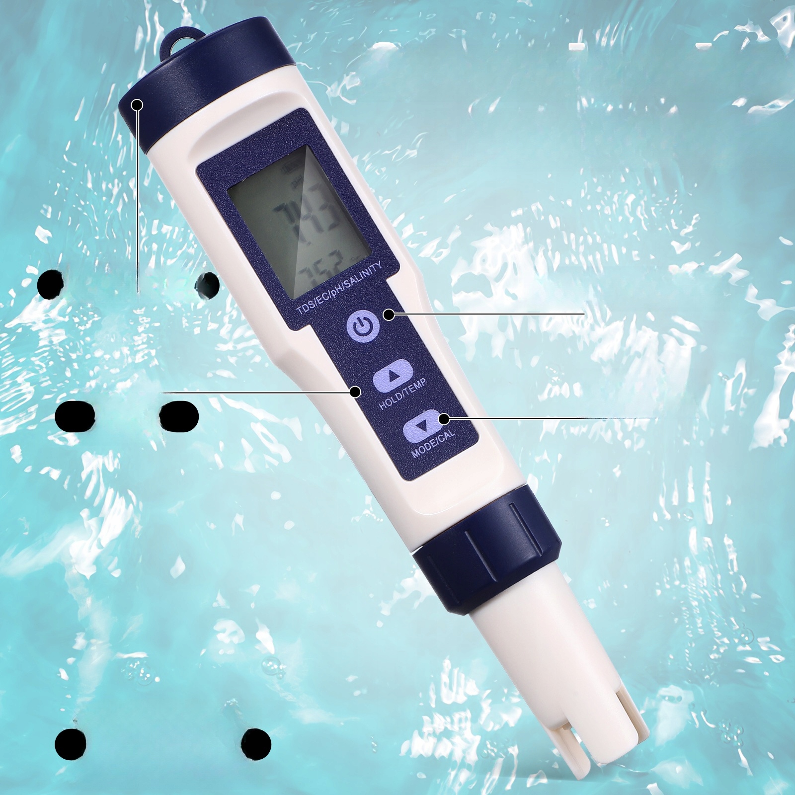 ✅Просте управління: тестером води керують за допомогою кнопок, він має інтуїтивно зрозуміле розташування та компактний дизайн, що робить його легким для будь-кого.