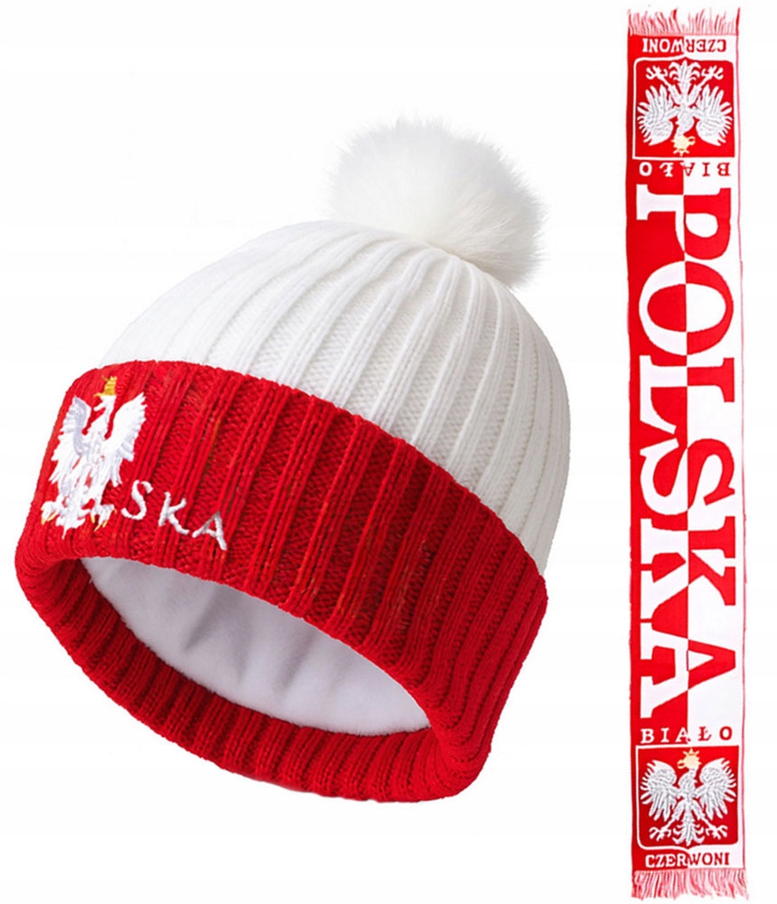 НАБІР ДЛЯ ВБОЛІВАЛЬНИКА ПОЛЬСЬКИЙ ШАРФ + ЗИМОВА ШАПКА ЕМБЛЕМА ПРАПОР ПОЛЬЩІ