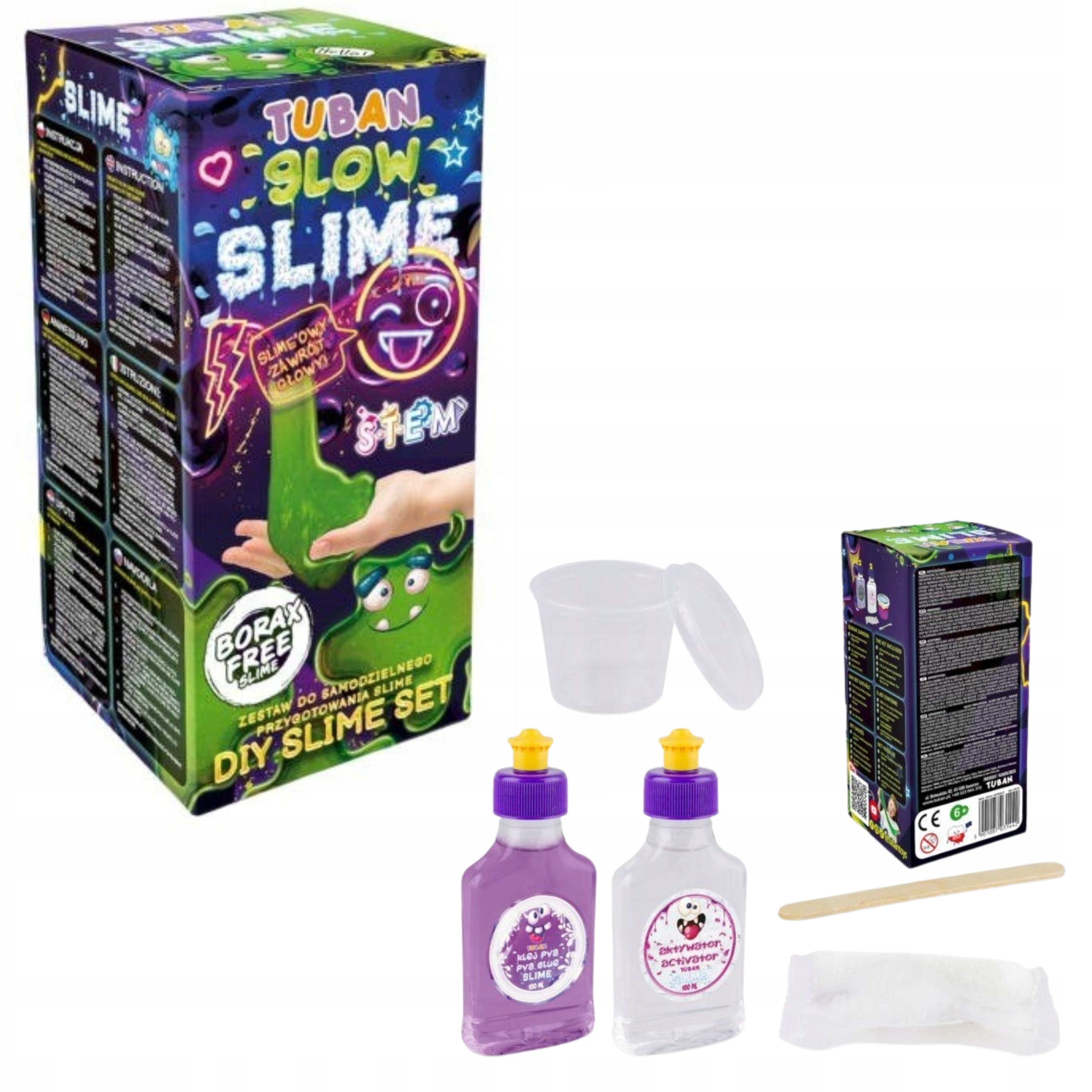 GLOW IN THE DARK - це фіолетовий слайм, що світиться в темряві, який ви можете зробити самостійно, використовуючи лише те, що входить до комплекту картону.
